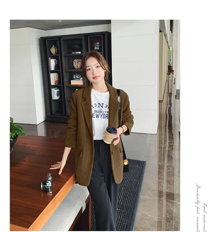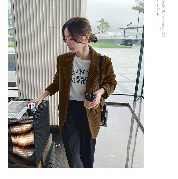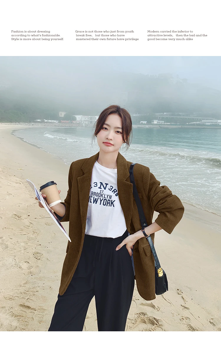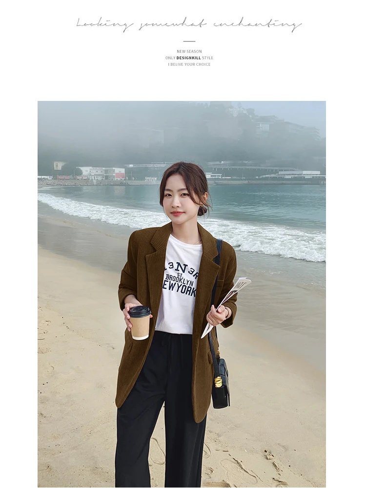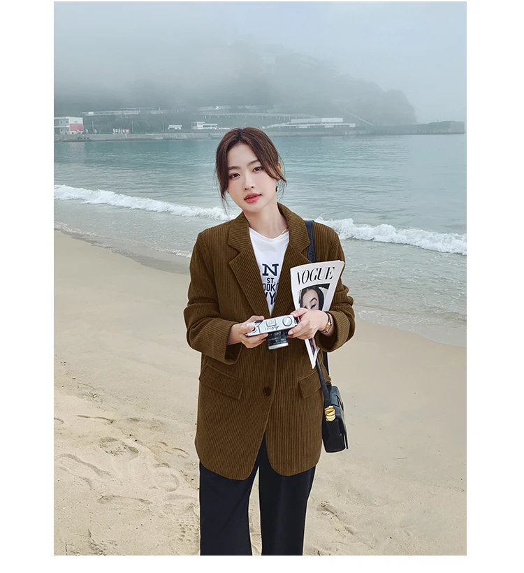 Brown Corduroy Jacket for Women 2025 Spring and Autum Short Single-Breasted Slim Workplace Elegant Sleeveless Top Jacket