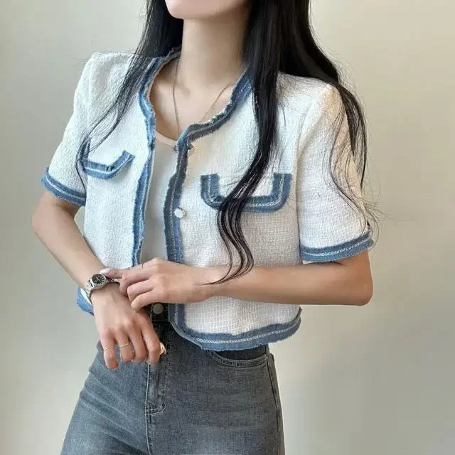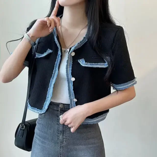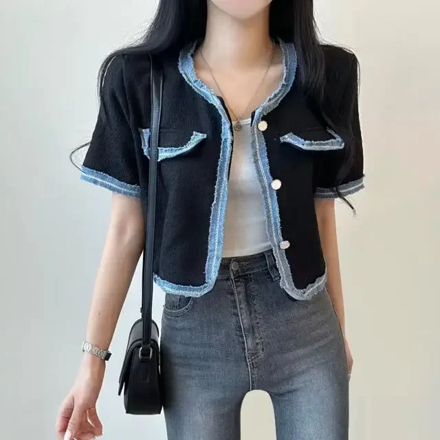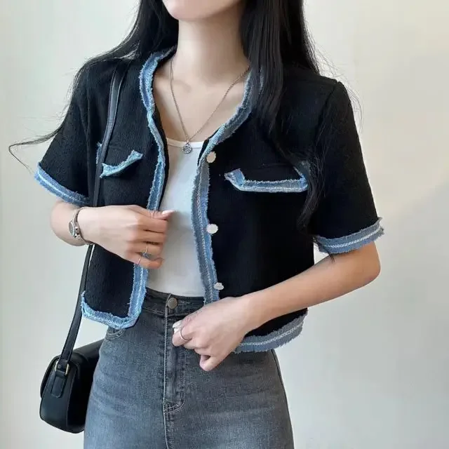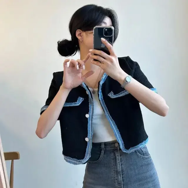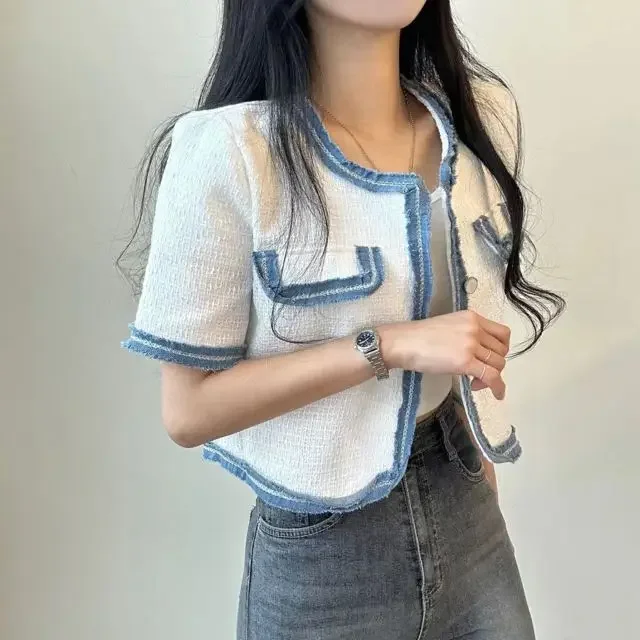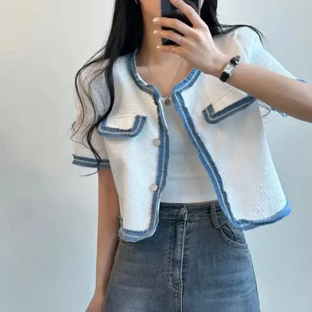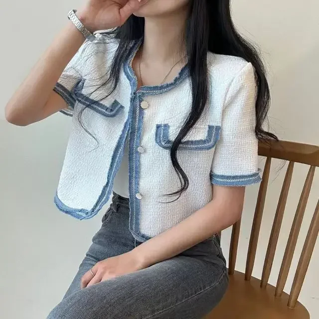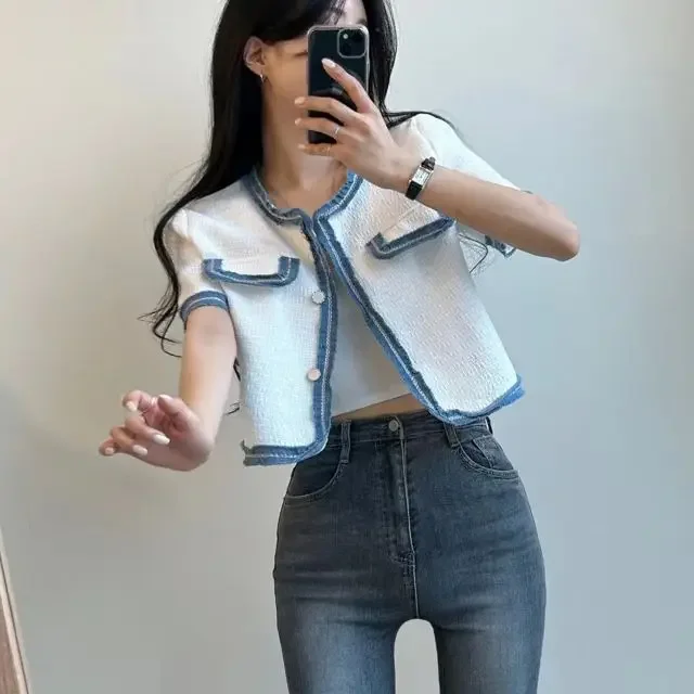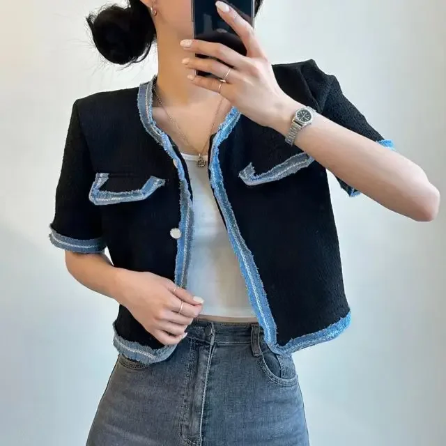 Chic Summer Casual round Ne Color Blo Loose ort Sve Thiened Woolen Coat Sli Versatile Lightweight Women's Jaet