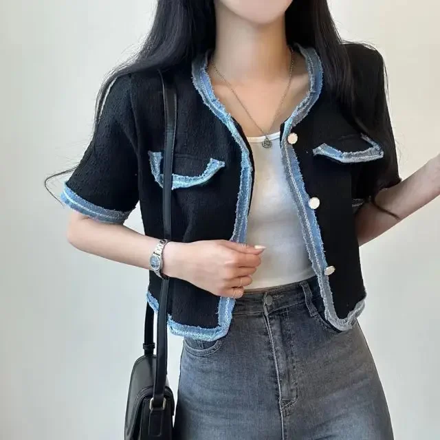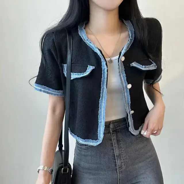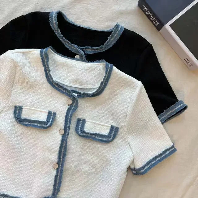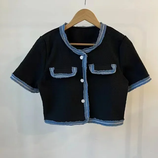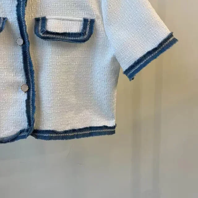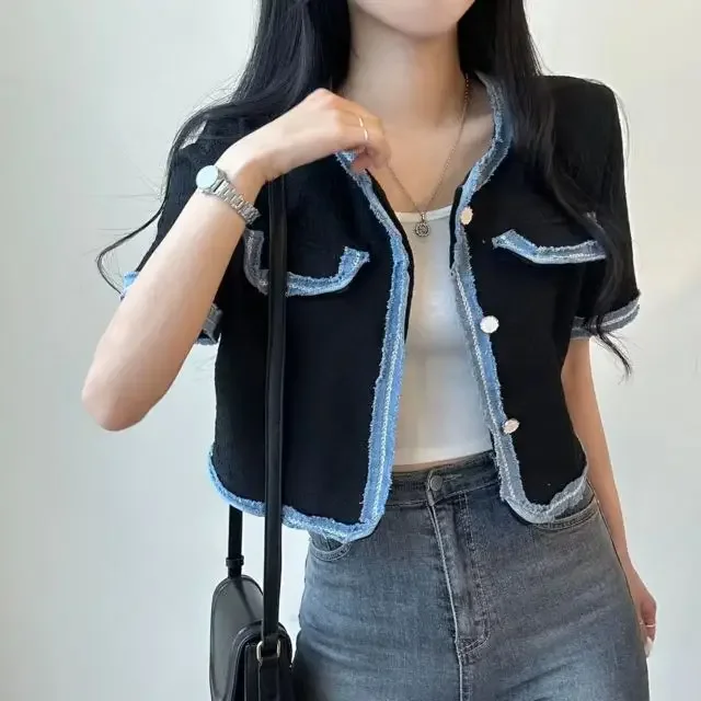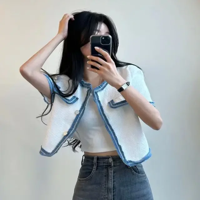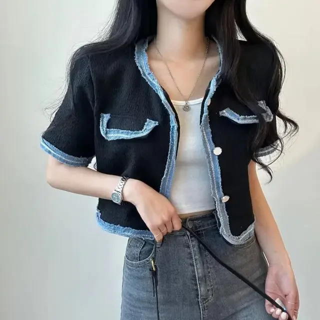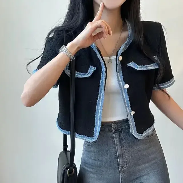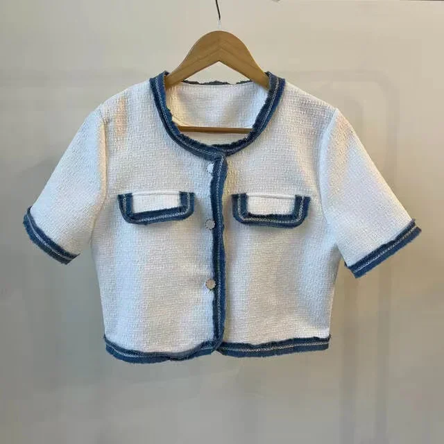 Chic Summer Casual round Ne Color Blo Loose ort Sve Thiened Woolen Coat Sli Versatile Lightweight Women's Jaet