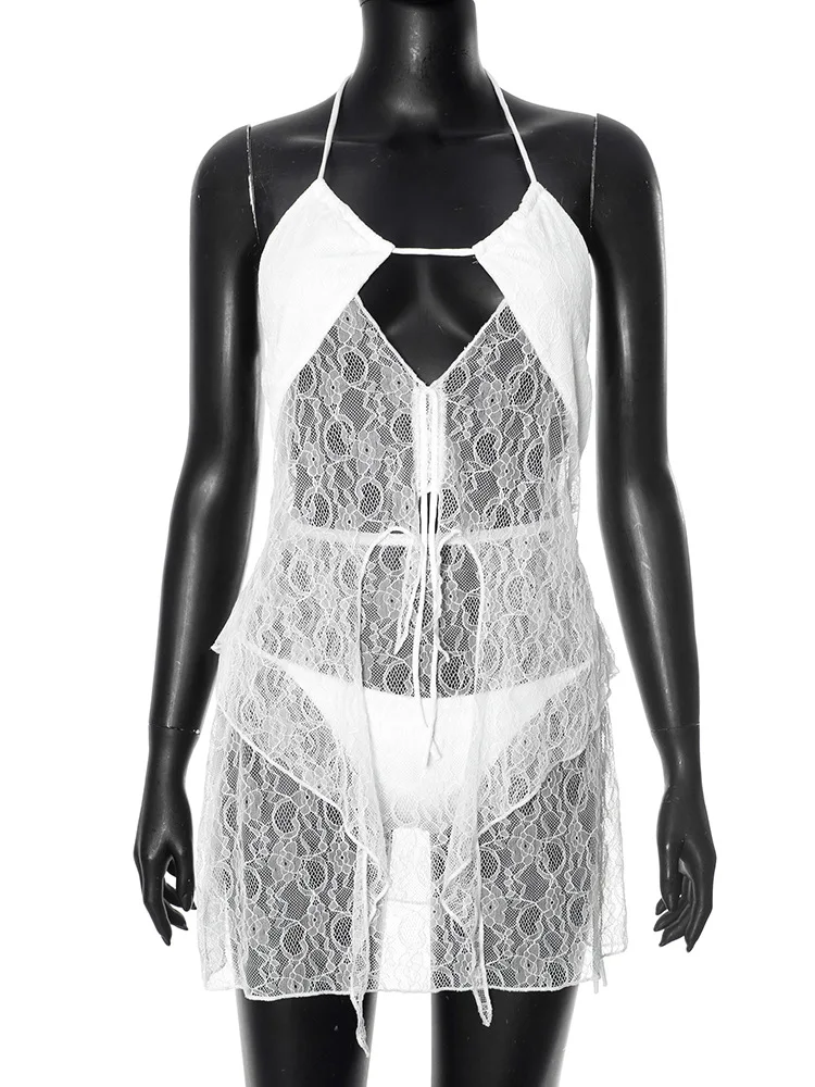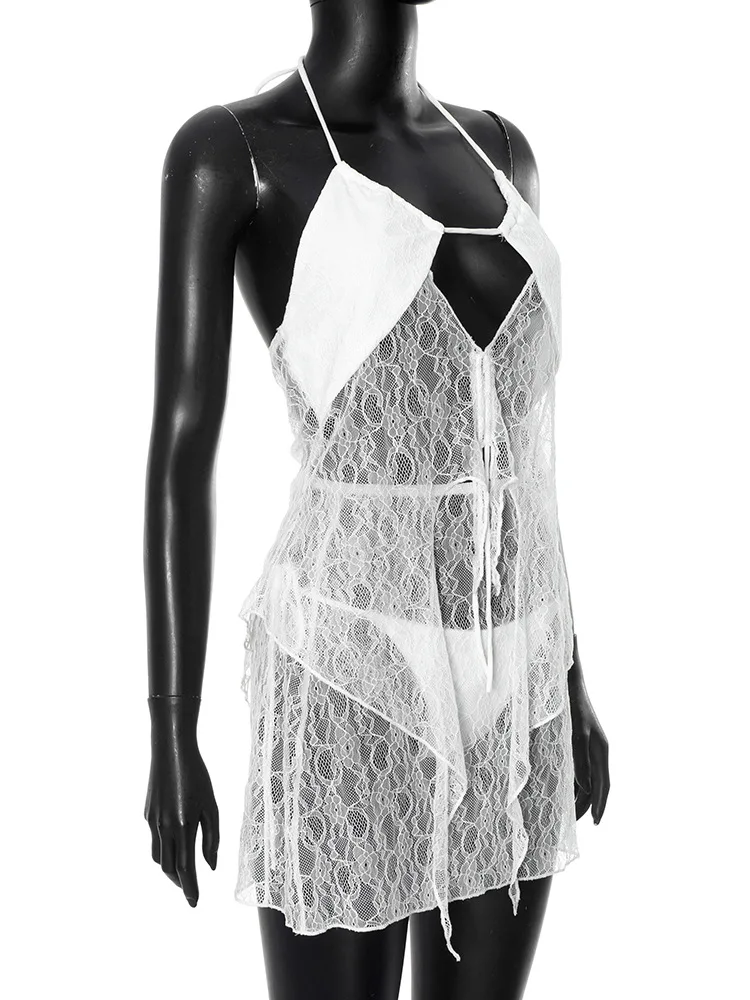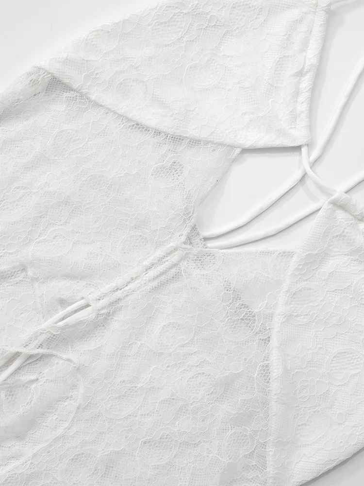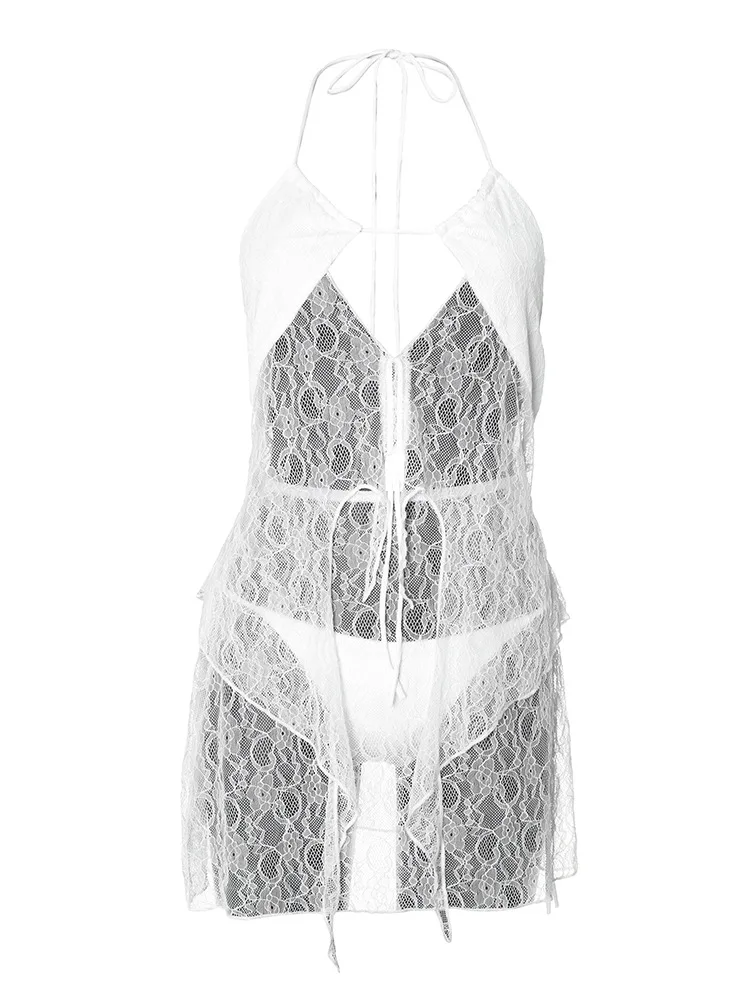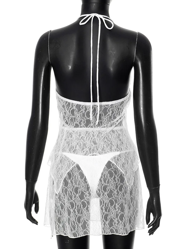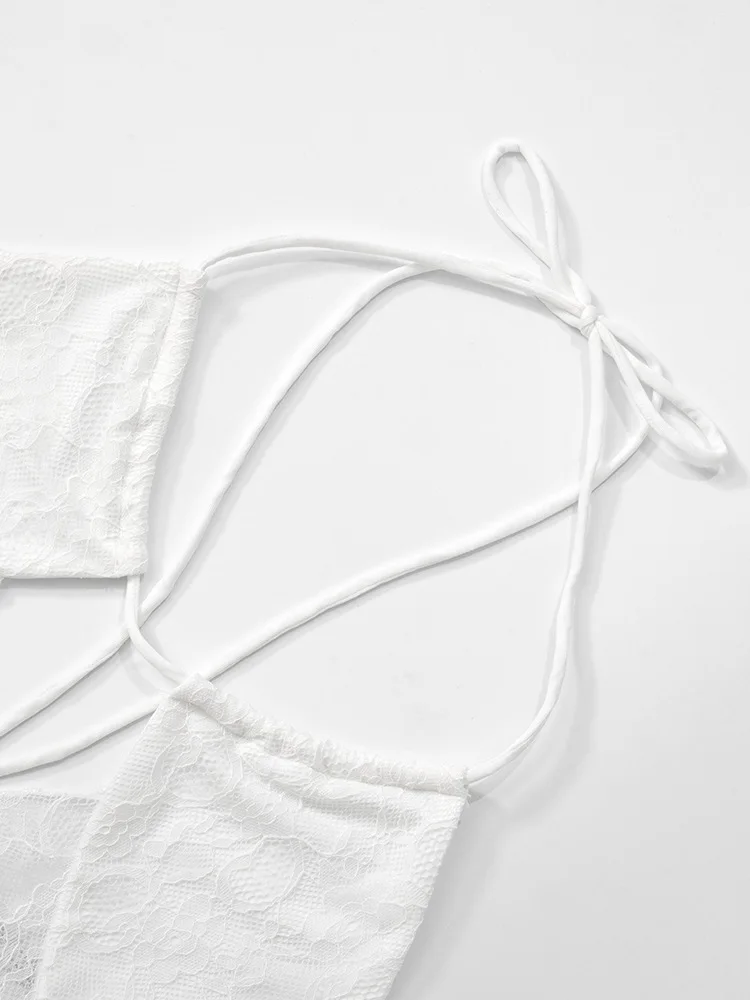 Fashion Lace Two Pieces Sets Women 2025 Summer Halter Sleeveless Slim Bodysuits+elastic Short Skirt Ladies Sexy Outfits
