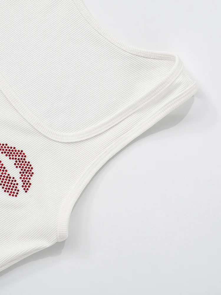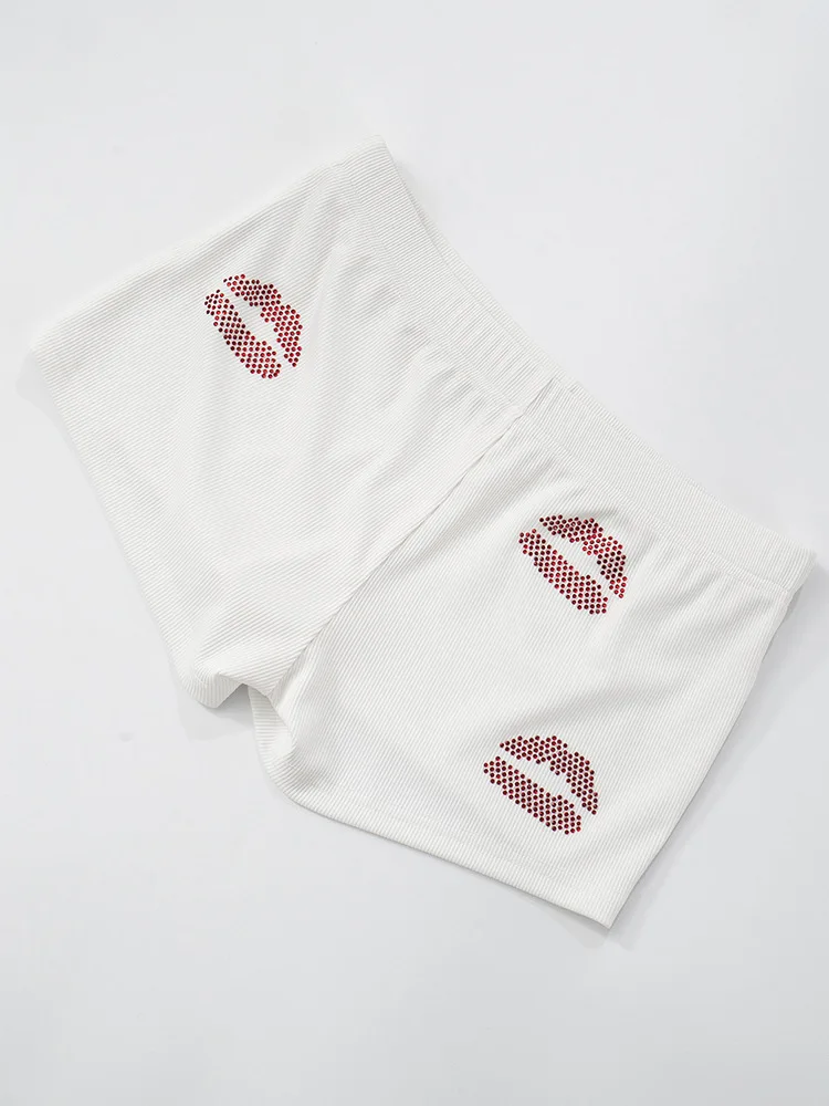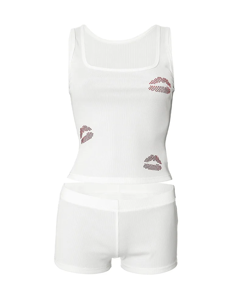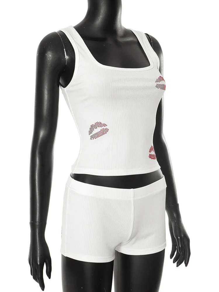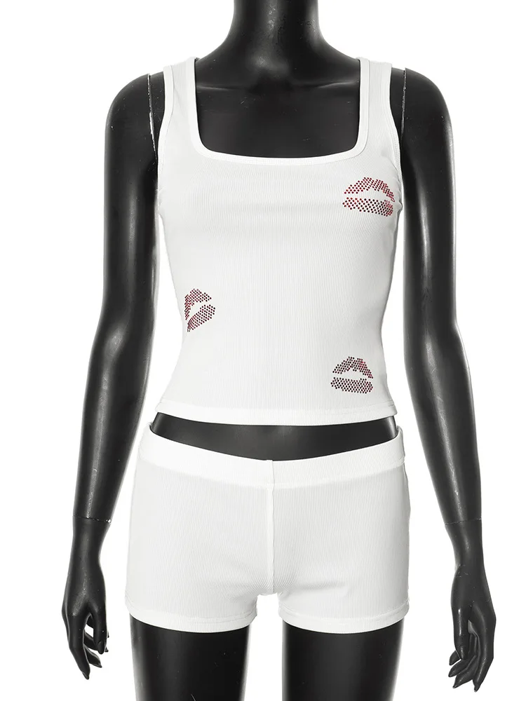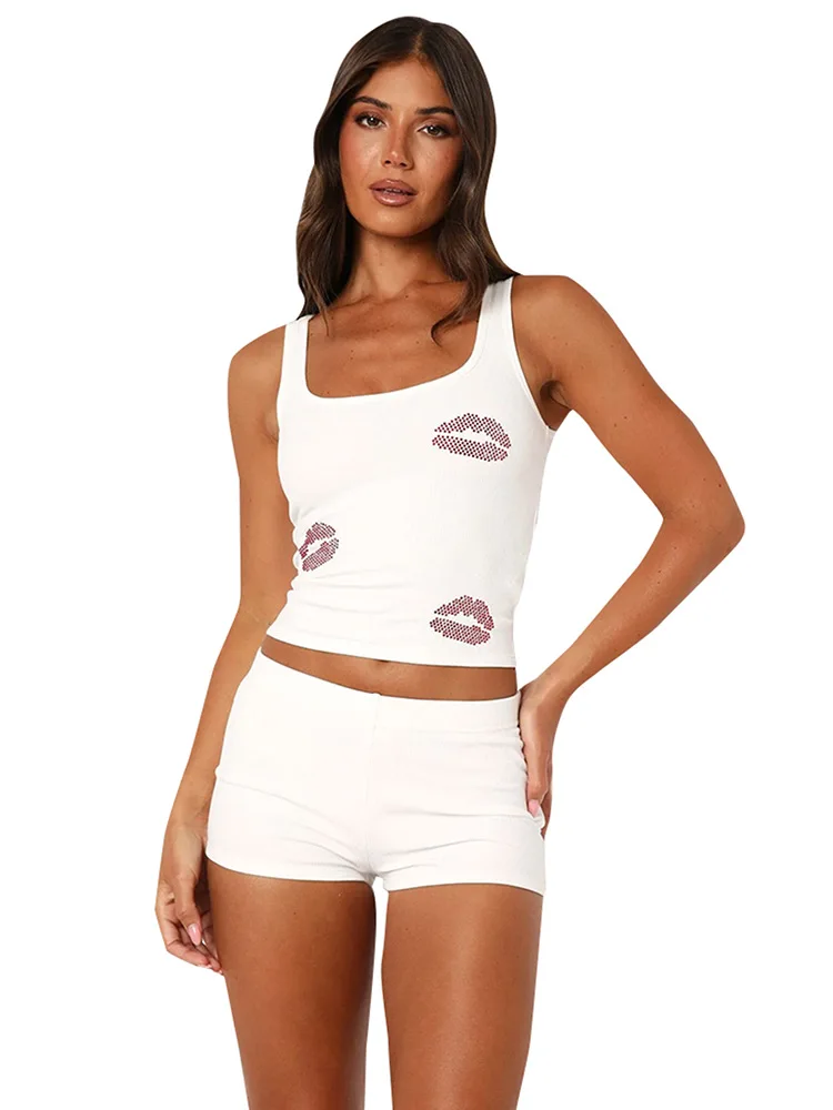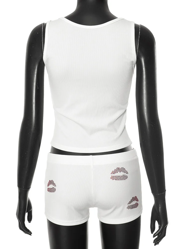 Fashion Sexy Rhinestones Tracksuits Women 2025 Summer Tank Tops And Shorts 2 Piece Set White Party Club Streetwear Female