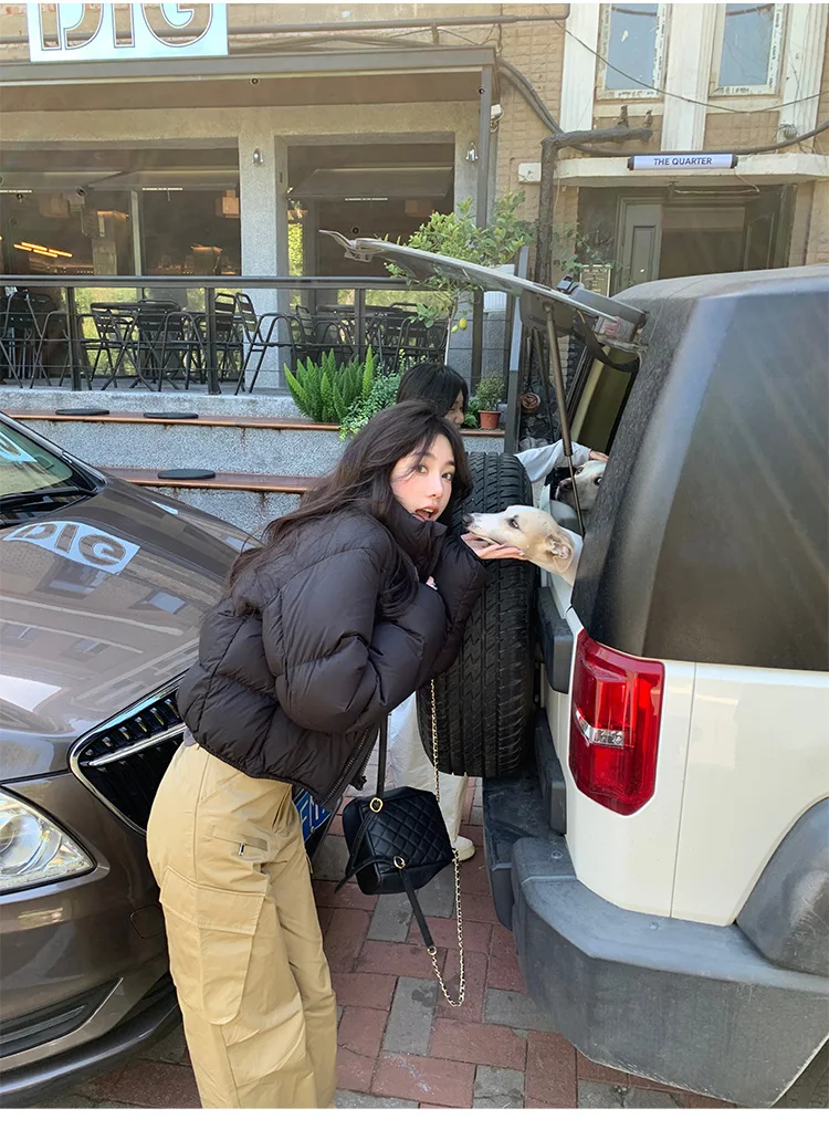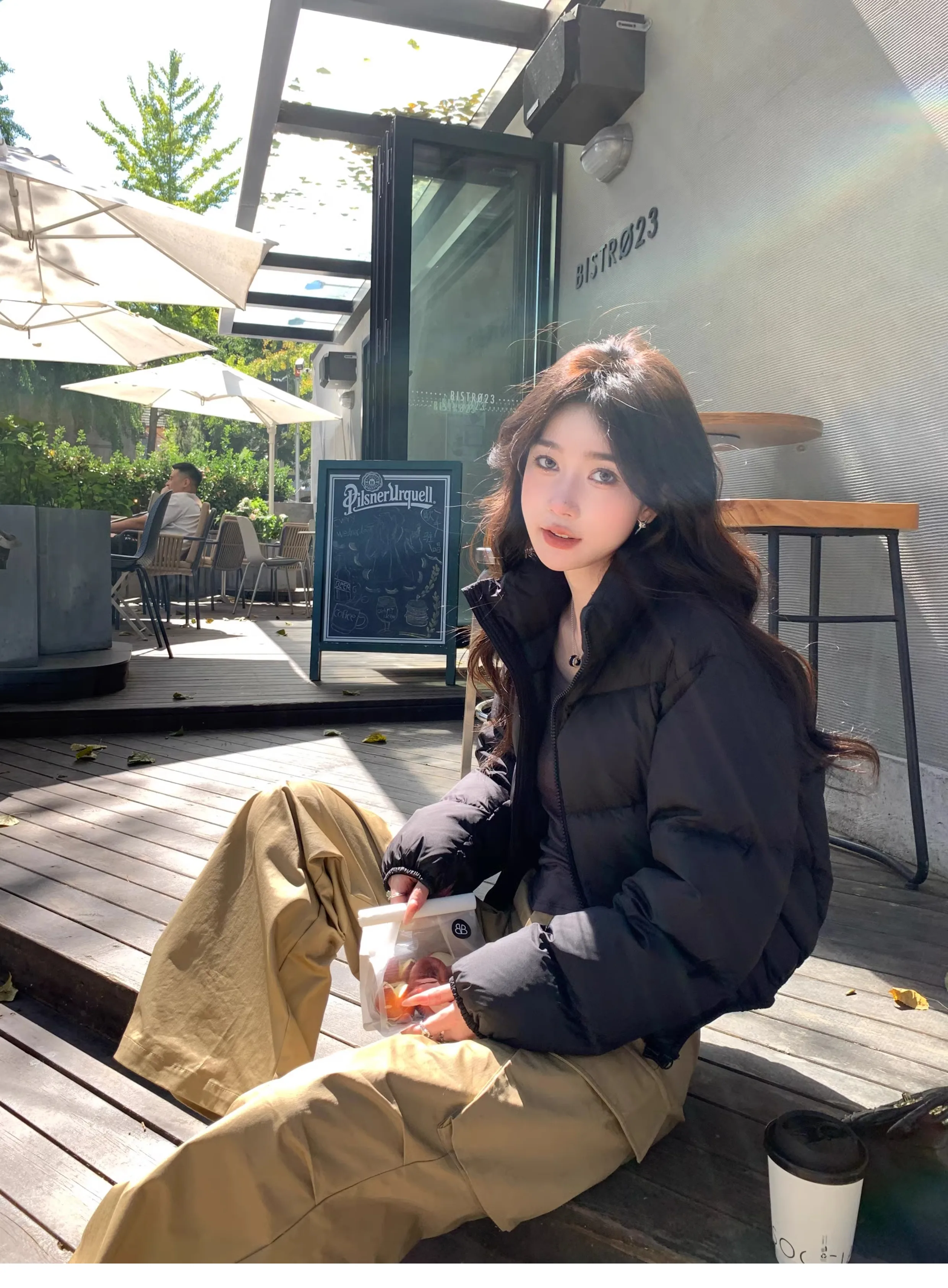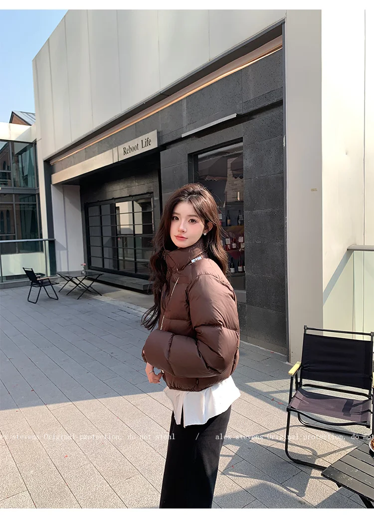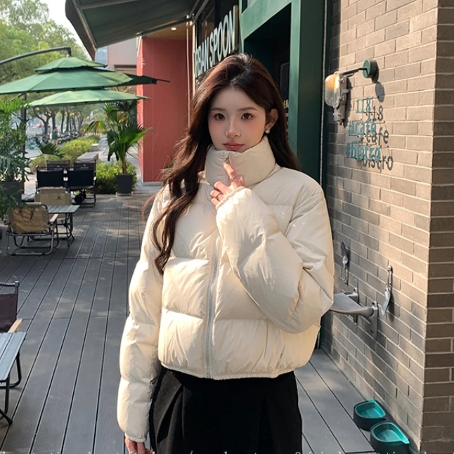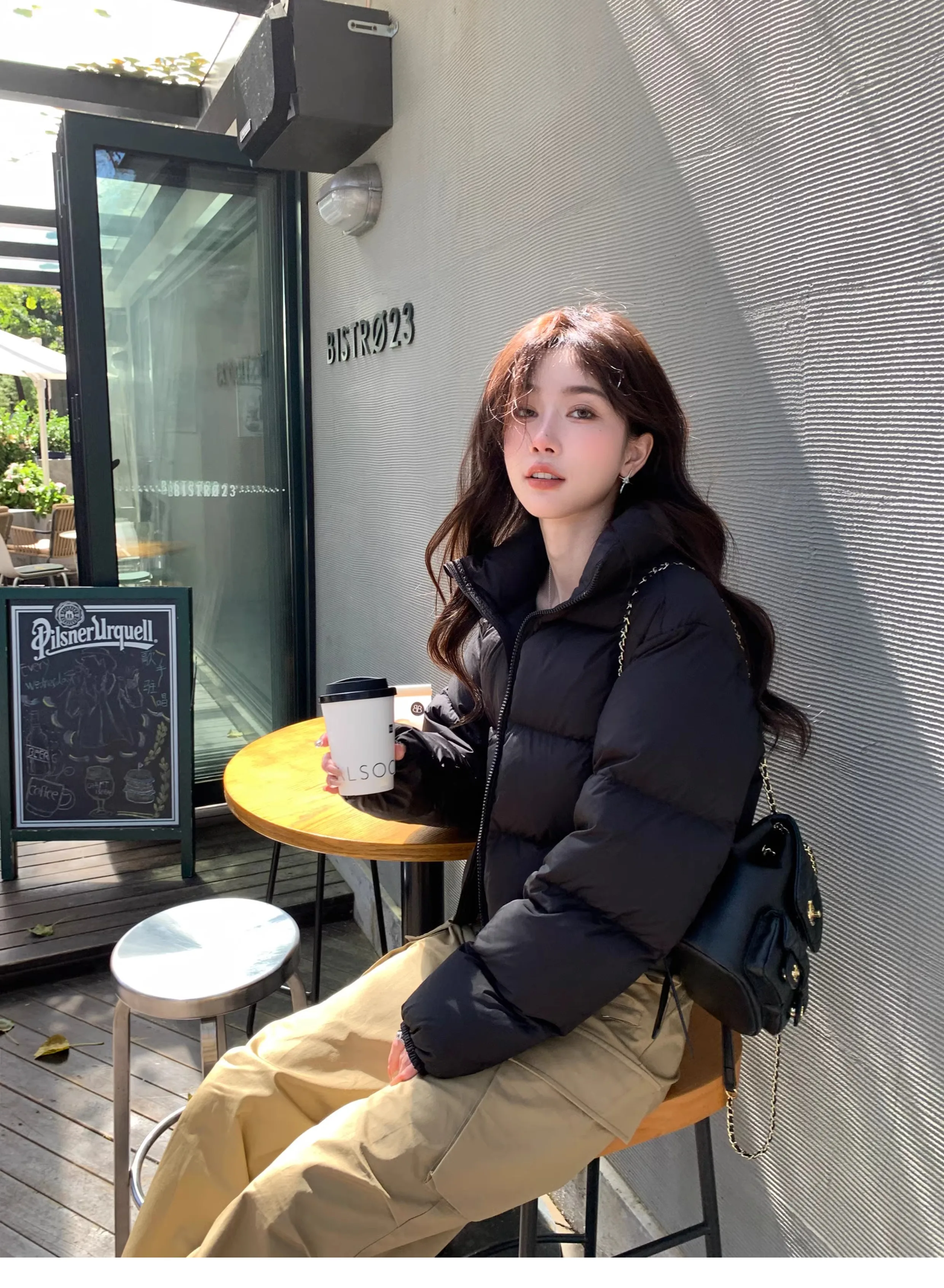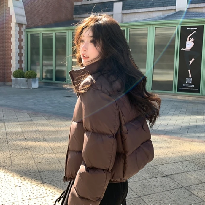 Fashion Women Down Cotton Jacket Winter Warm Thick Long Sleeve Stand Collar Short Parkas Female Loose Padded Coats Outwear
