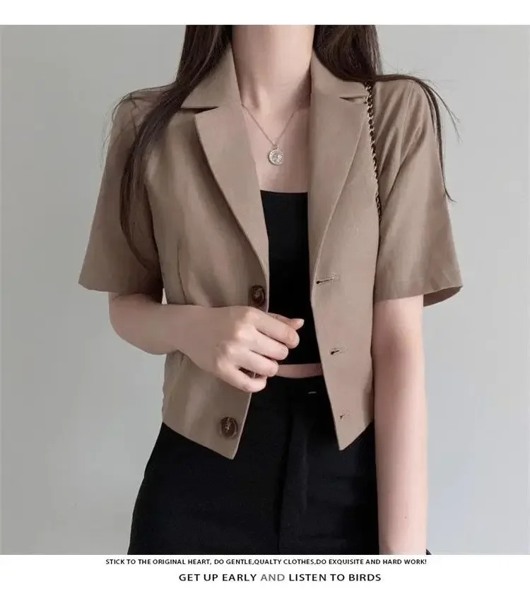 Korean Sle Casual ort Sve Color Women's Summer Thin Loose ort Coat Ele Outerwear Small Size Top