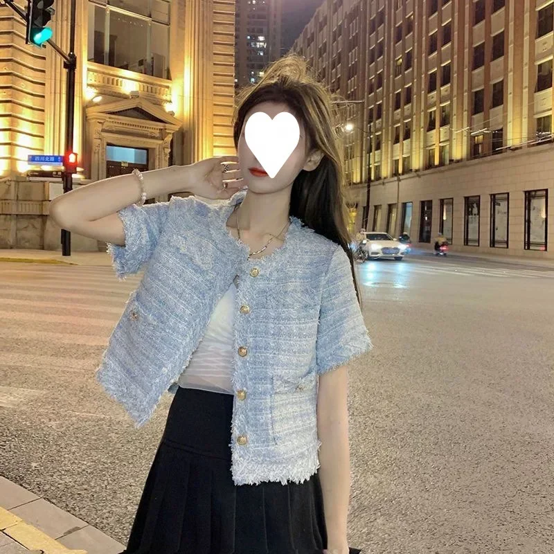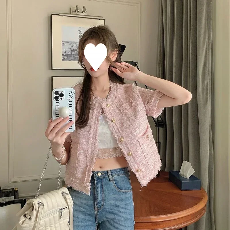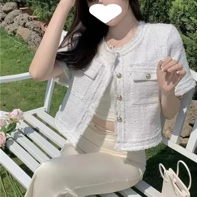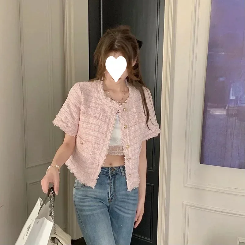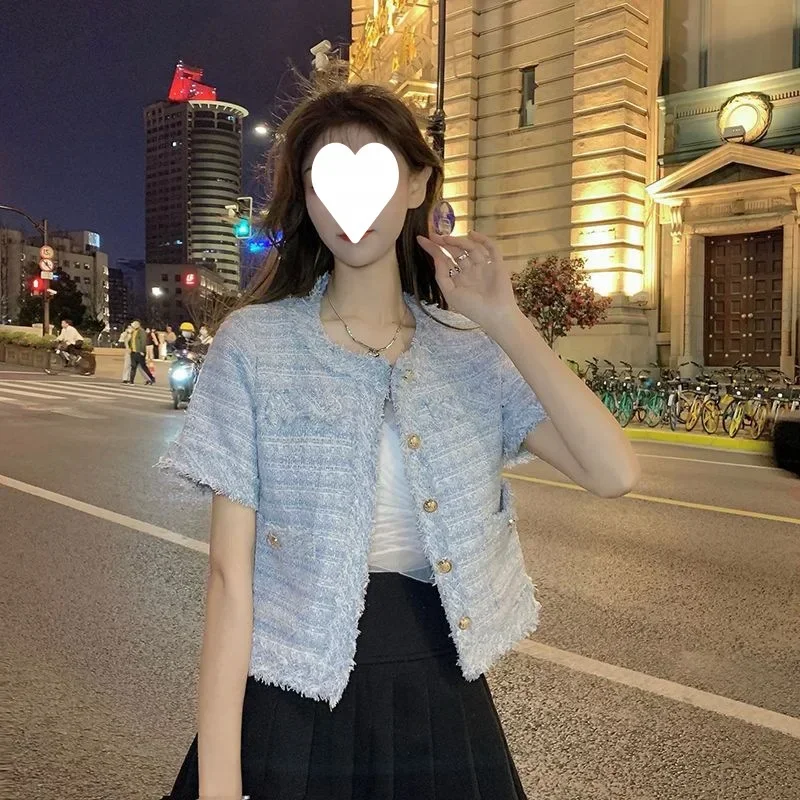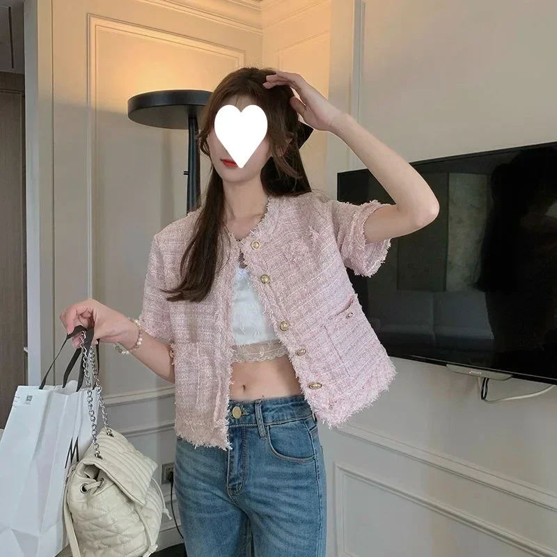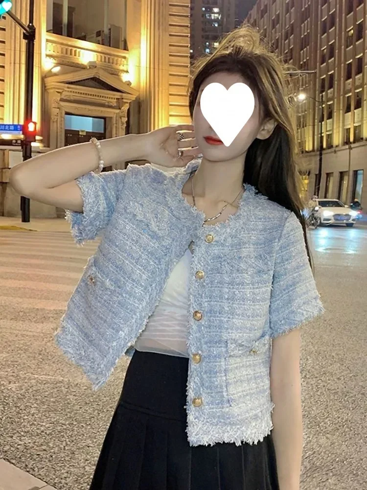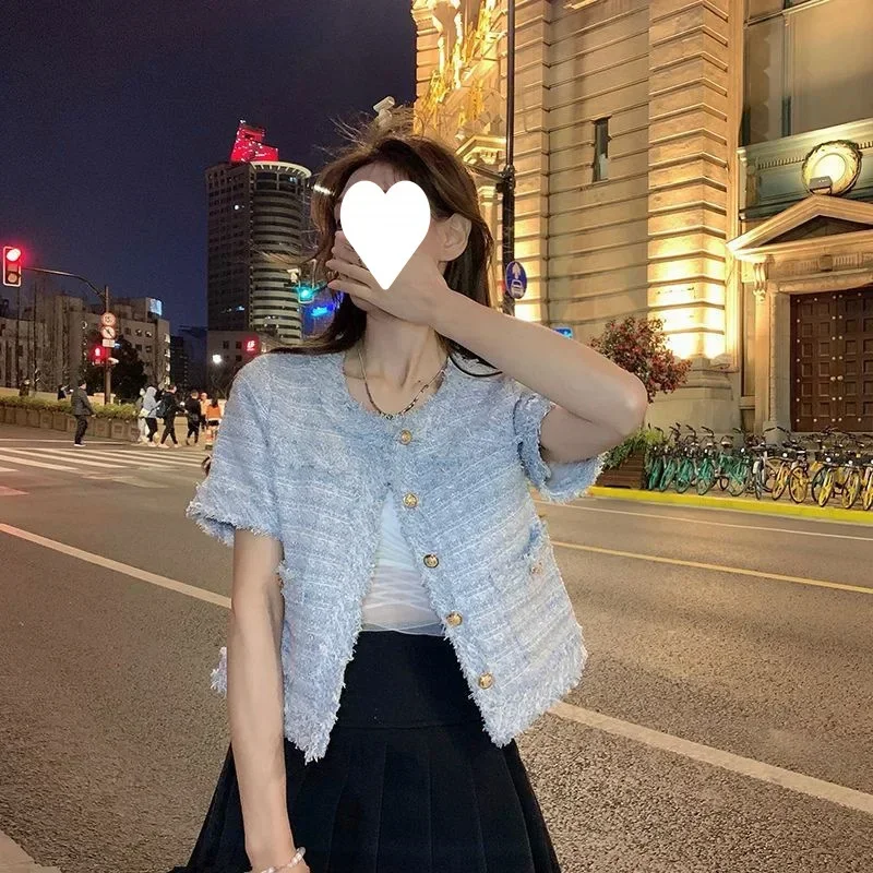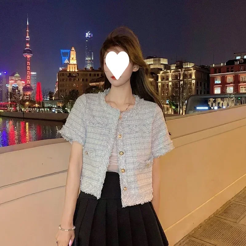 Summer Short Sleeve Jacket Women's Fashionable Tassel Trim Perfume Style Miniature Age-Defying Versatile Short Top