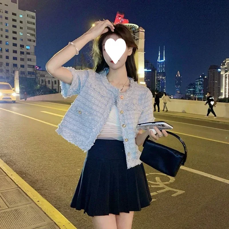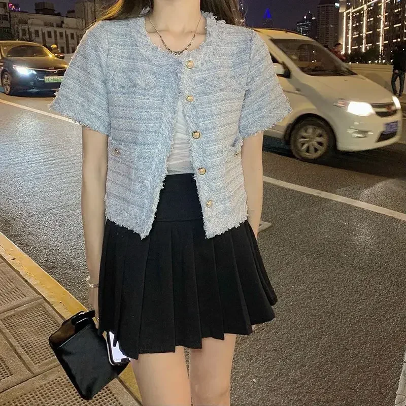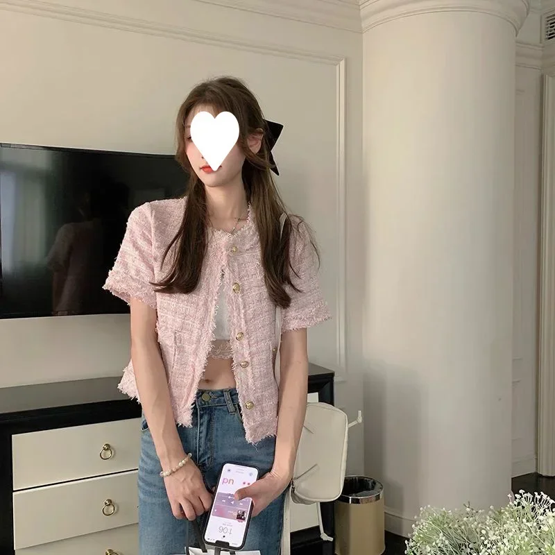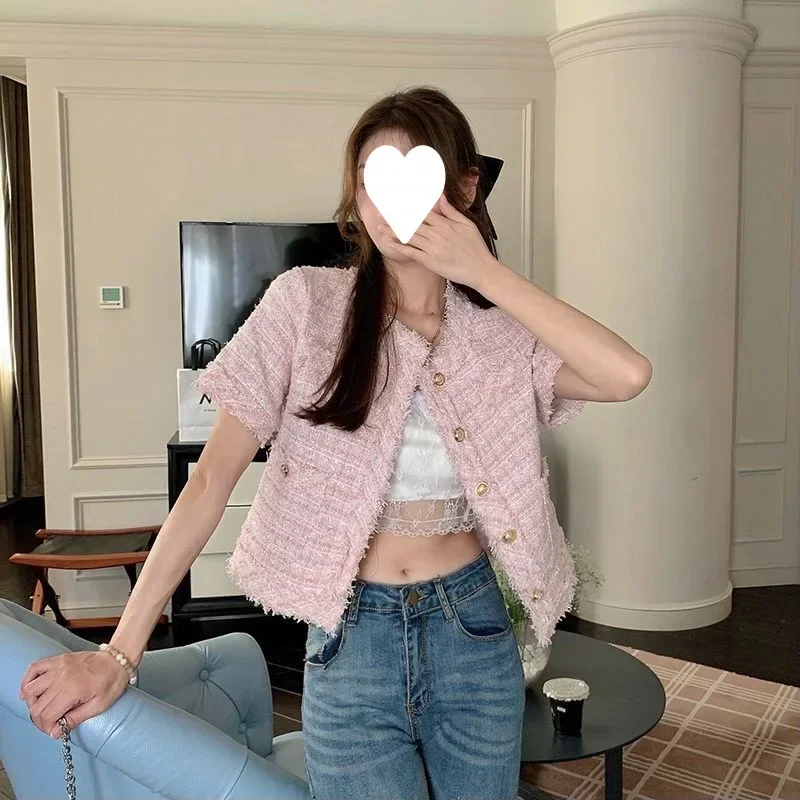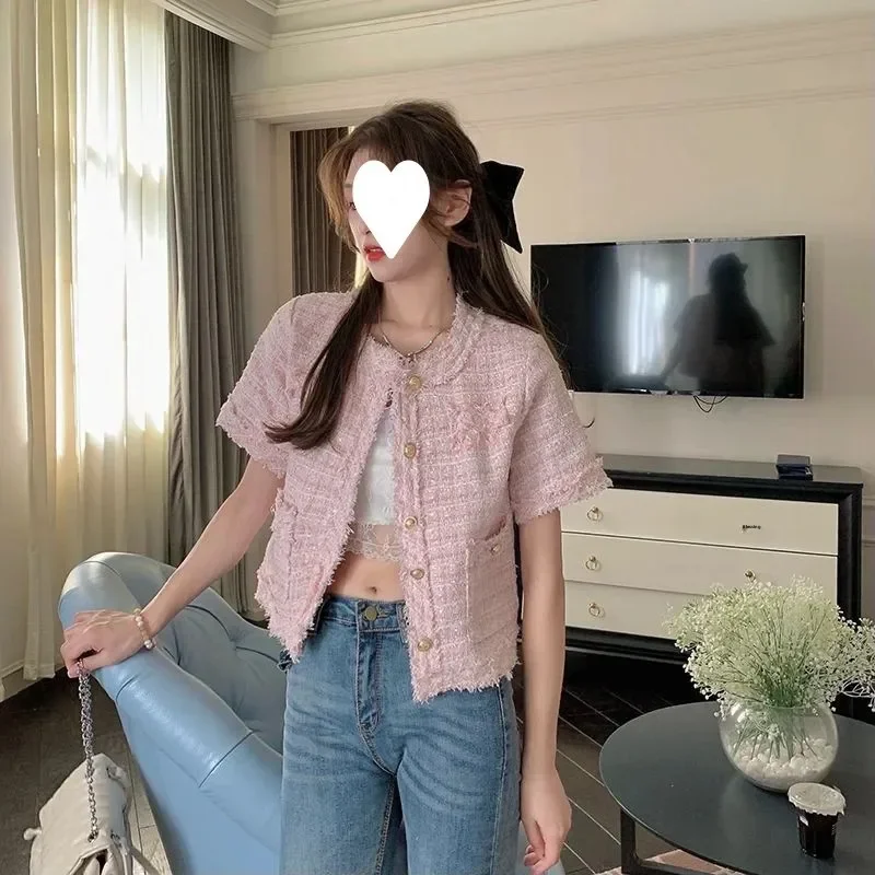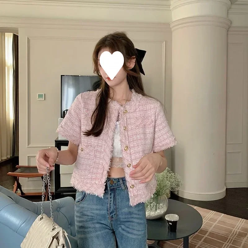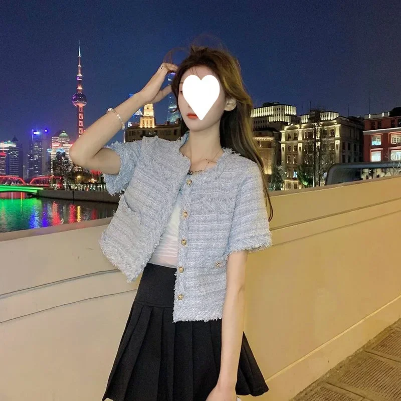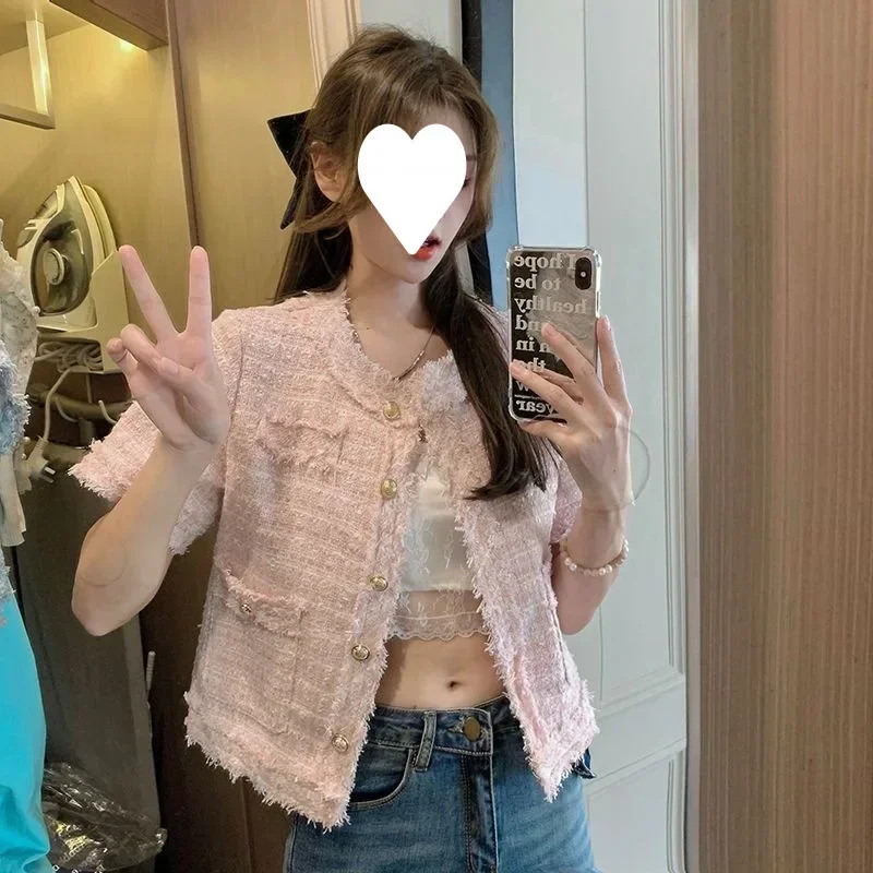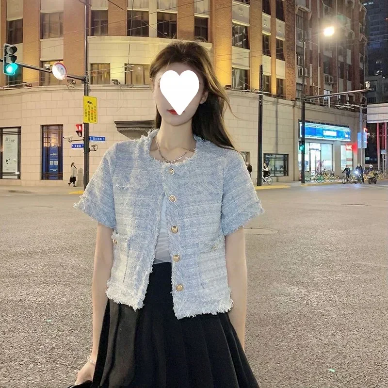 Summer Short Sleeve Jacket Women's Fashionable Tassel Trim Perfume Style Miniature Age-Defying Versatile Short Top