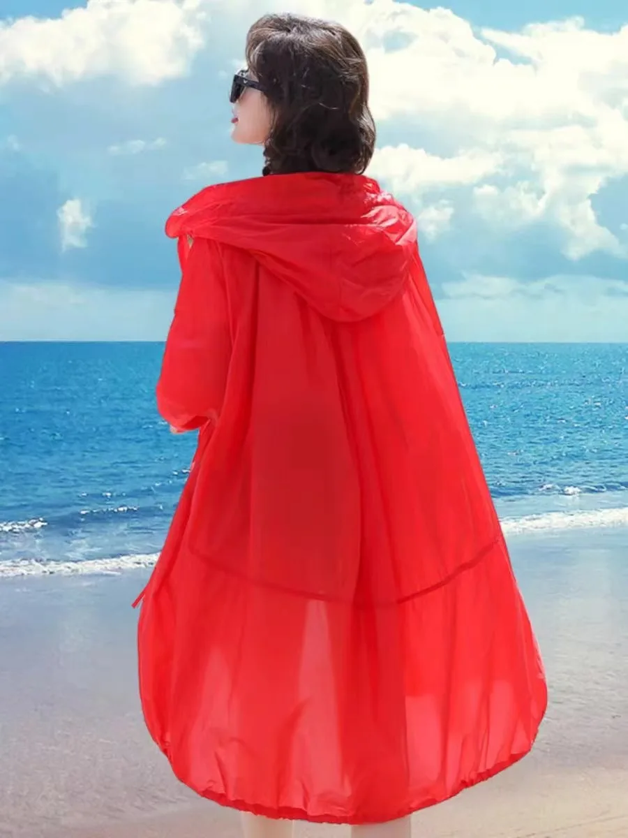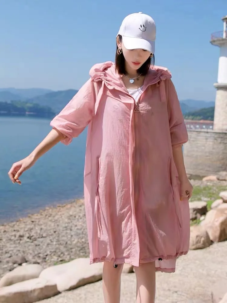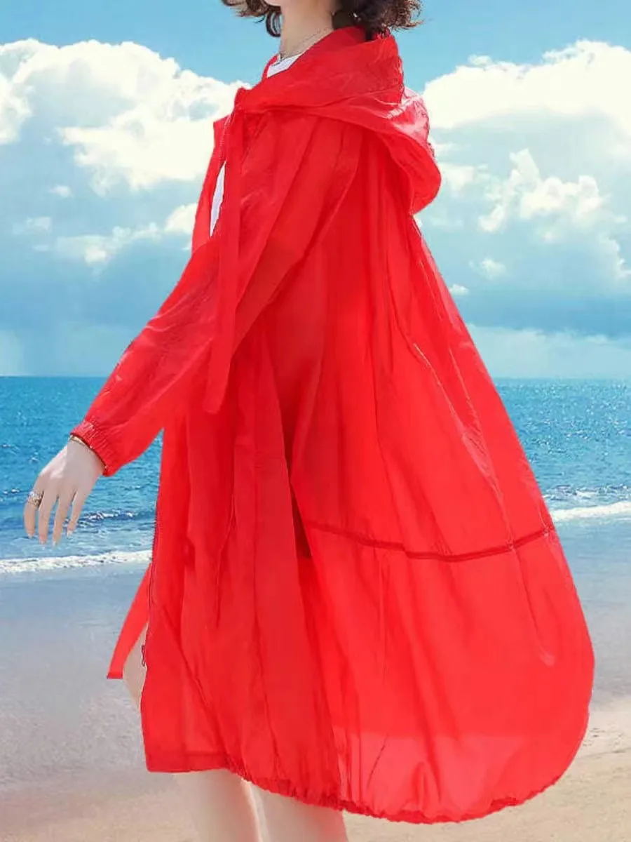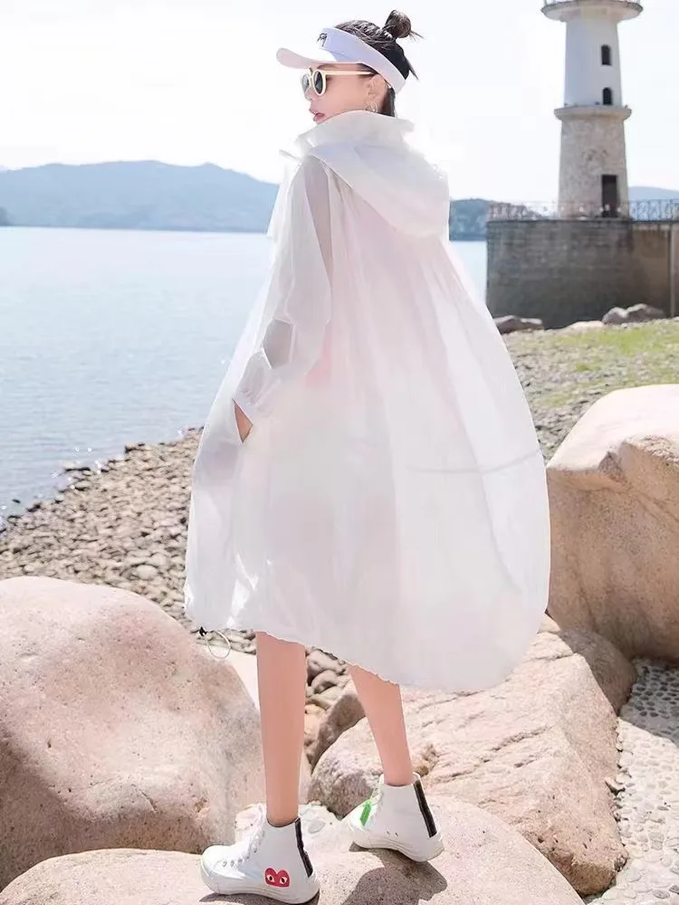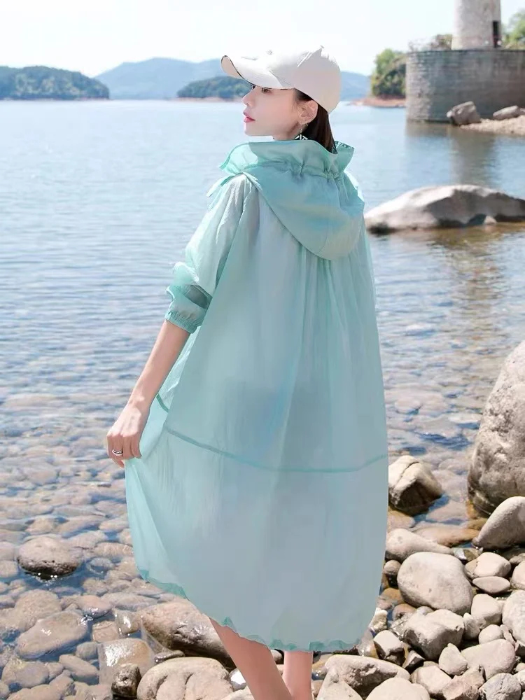 Summer Women Sunscreen Hoodie Female Solid Color Thin Ice Silk UV Protection Long-Sleeved Jackets Breathable Shirt Clothing