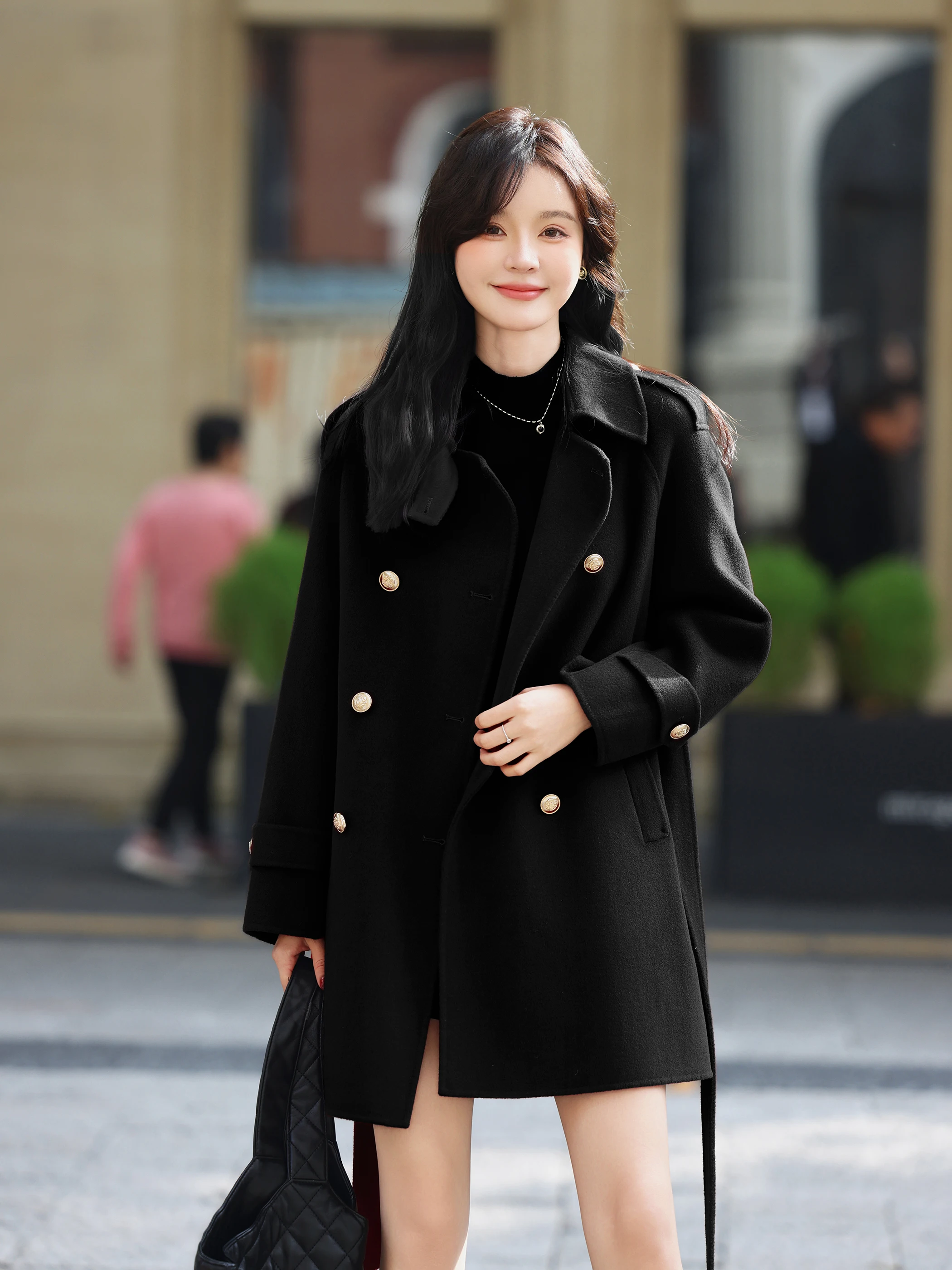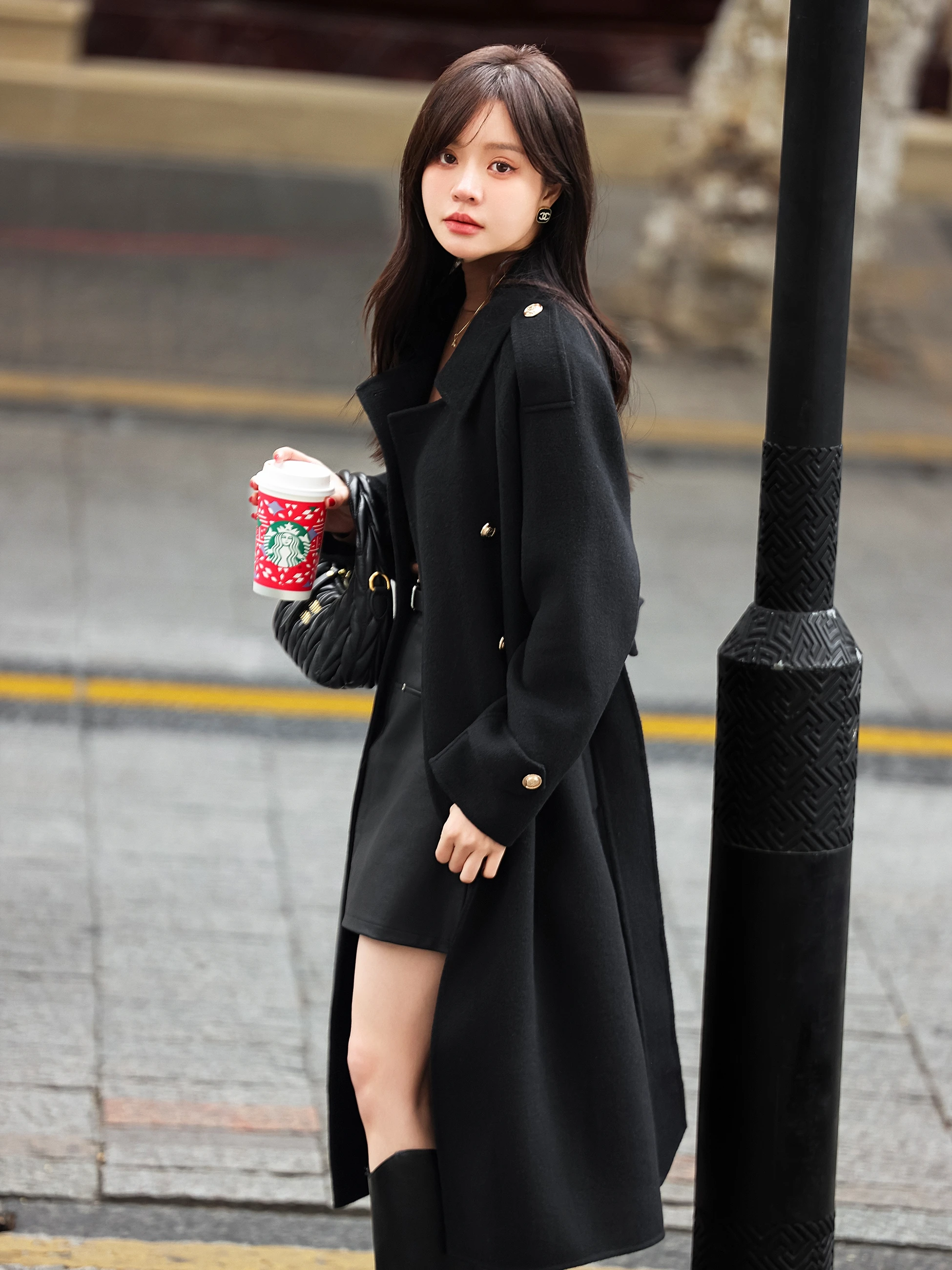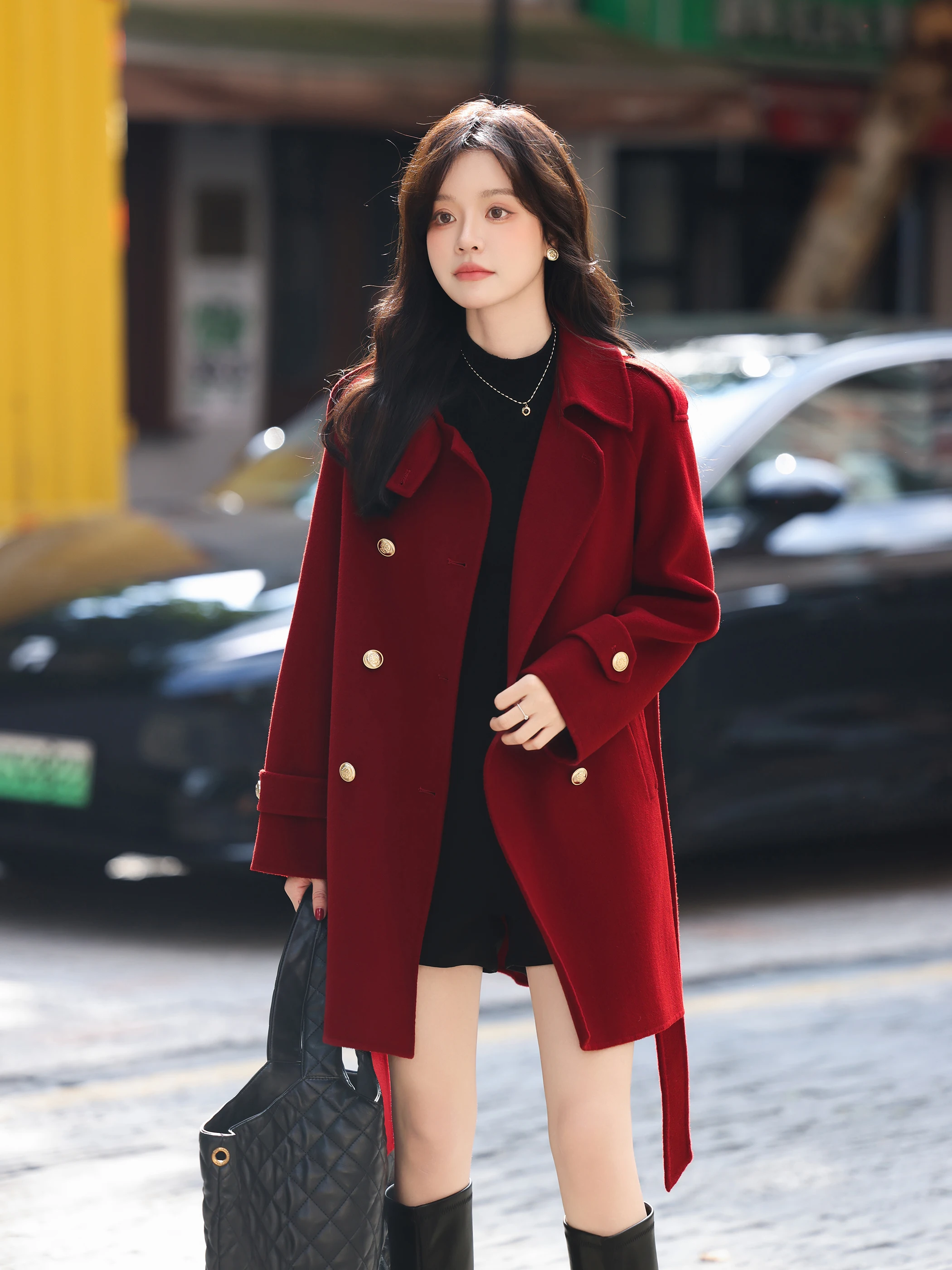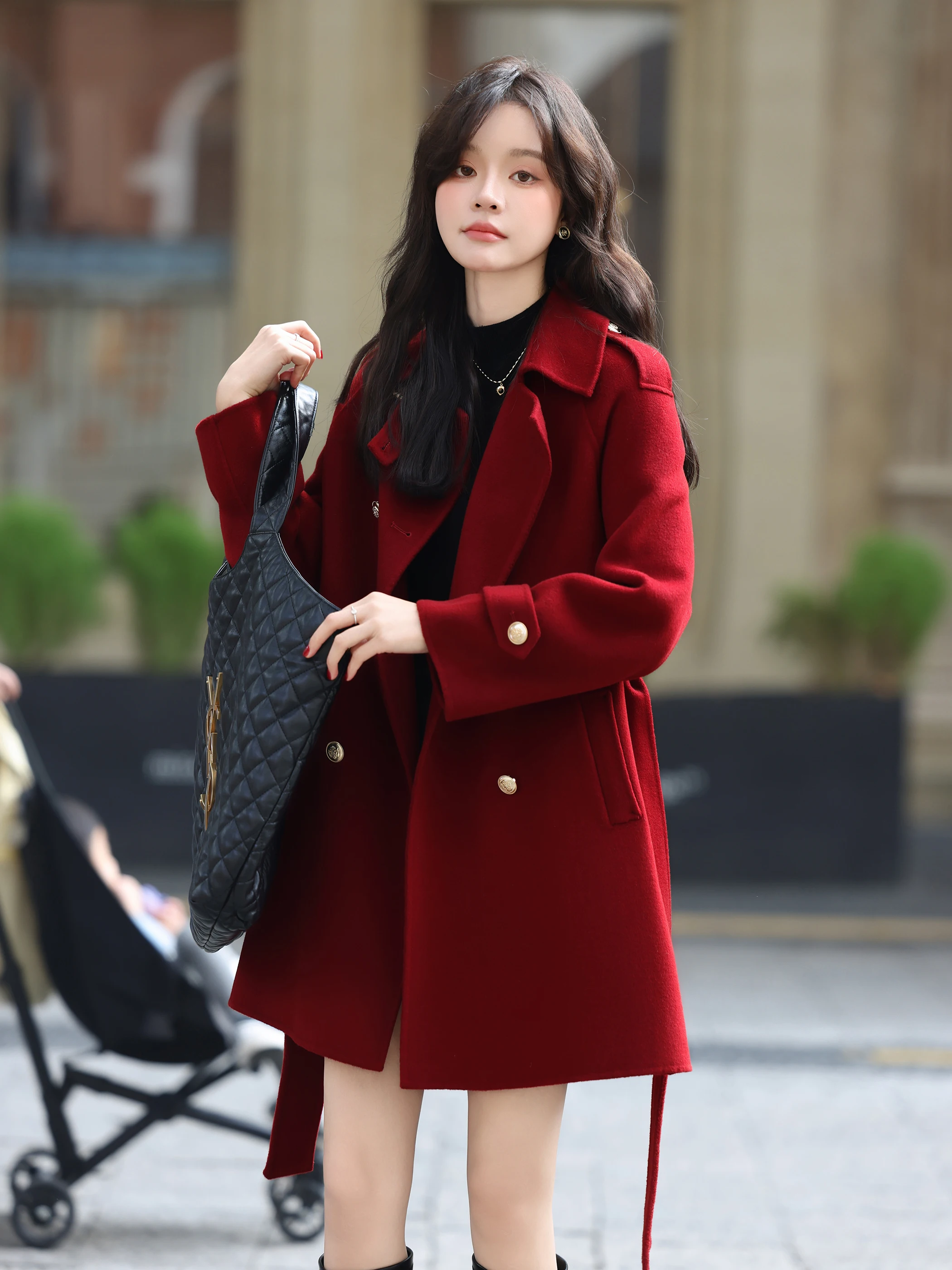 Vintage Double-Sided Cashmere Women's Coat Beige Woolen Style Autumn Winter New Korean Fashion Casual Gentle Fashion Long Coats
