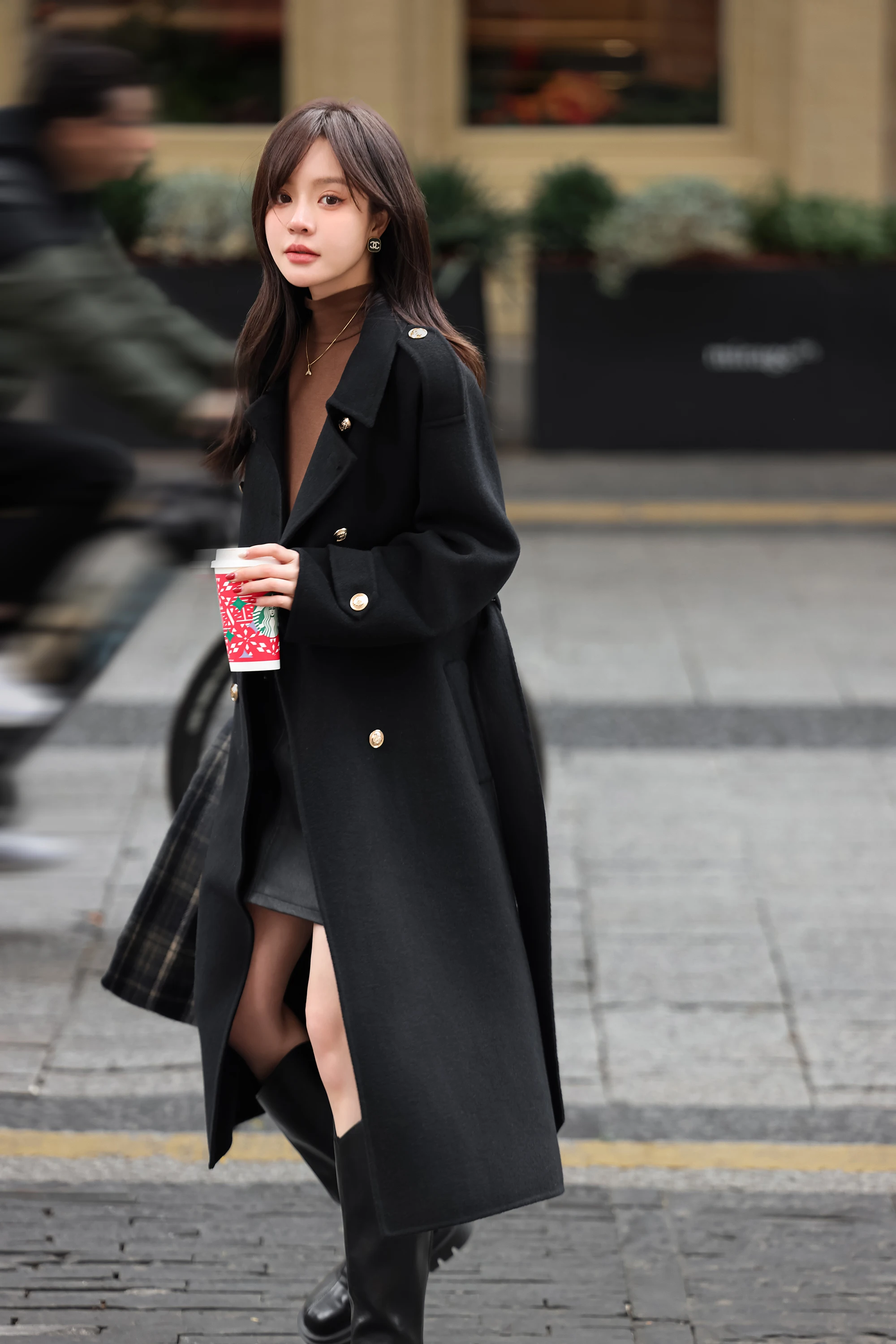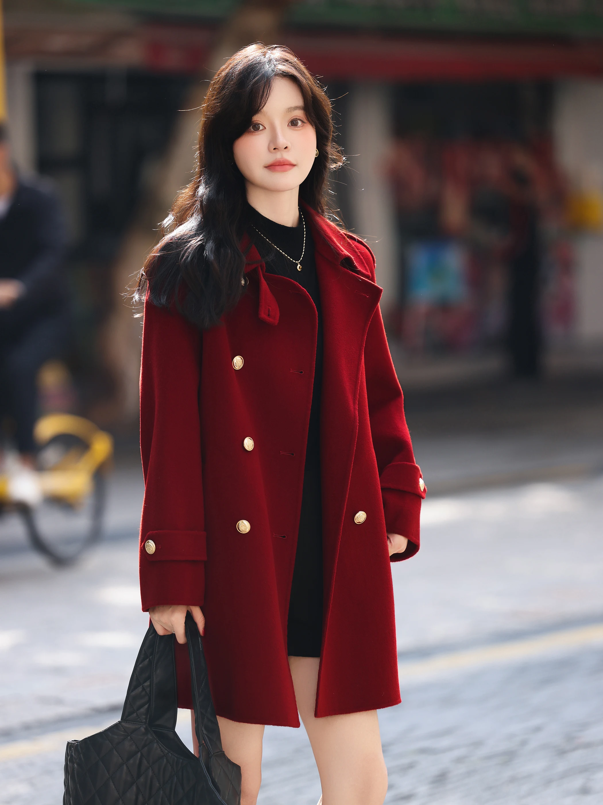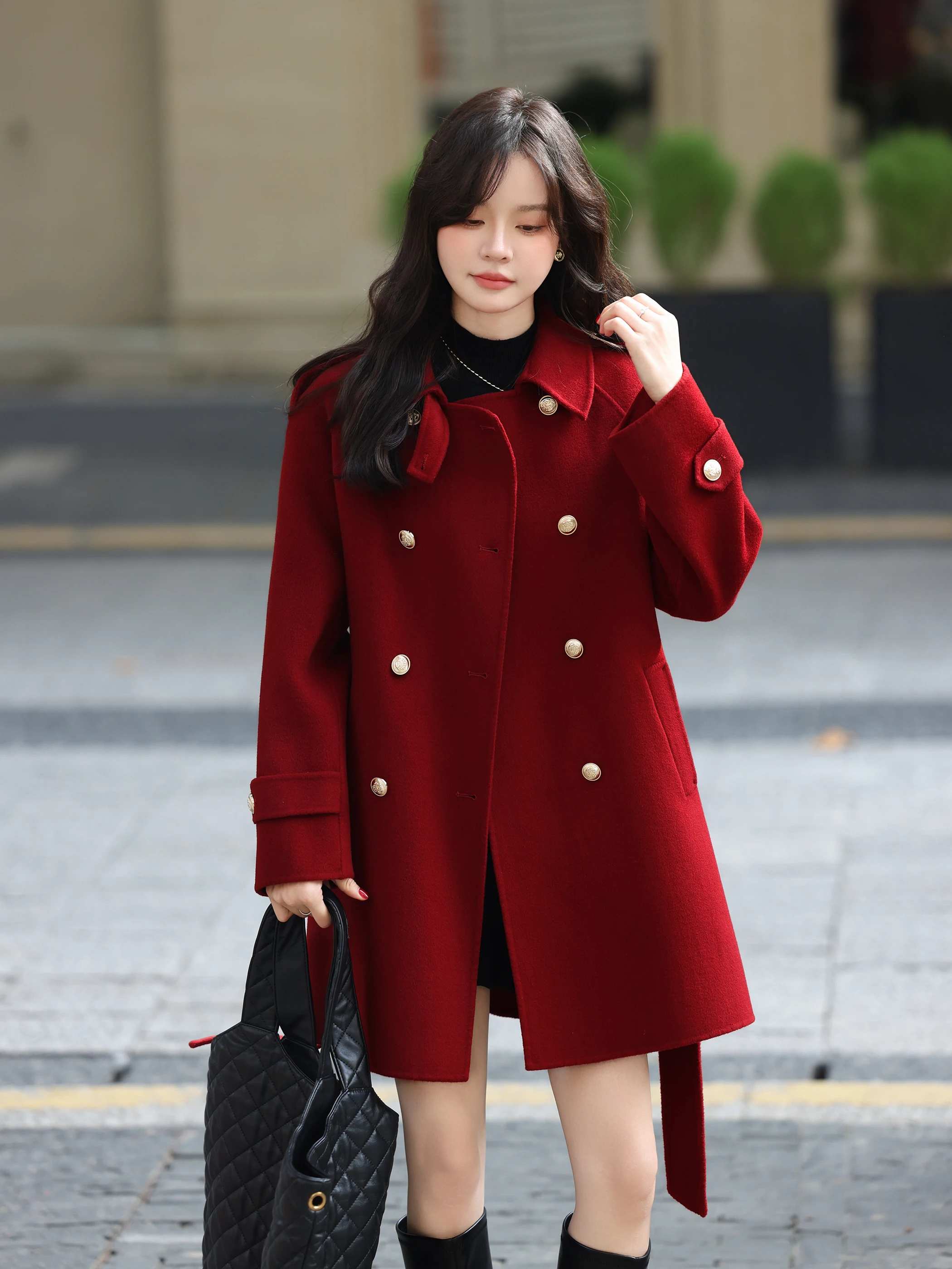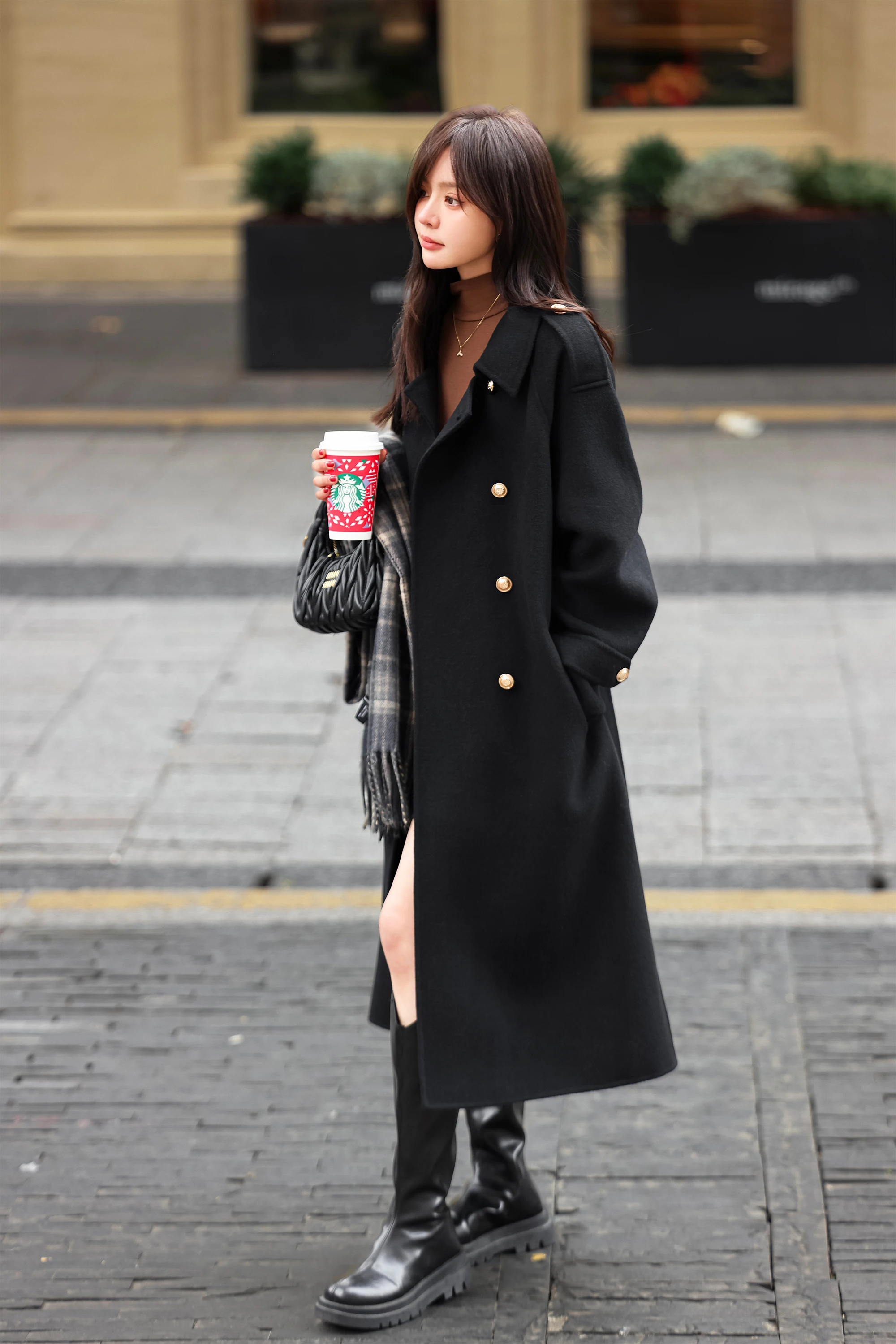 Vintage Double-Sided Cashmere Women's Coat Beige Woolen Style Autumn Winter New Korean Fashion Casual Gentle Fashion Long Coats