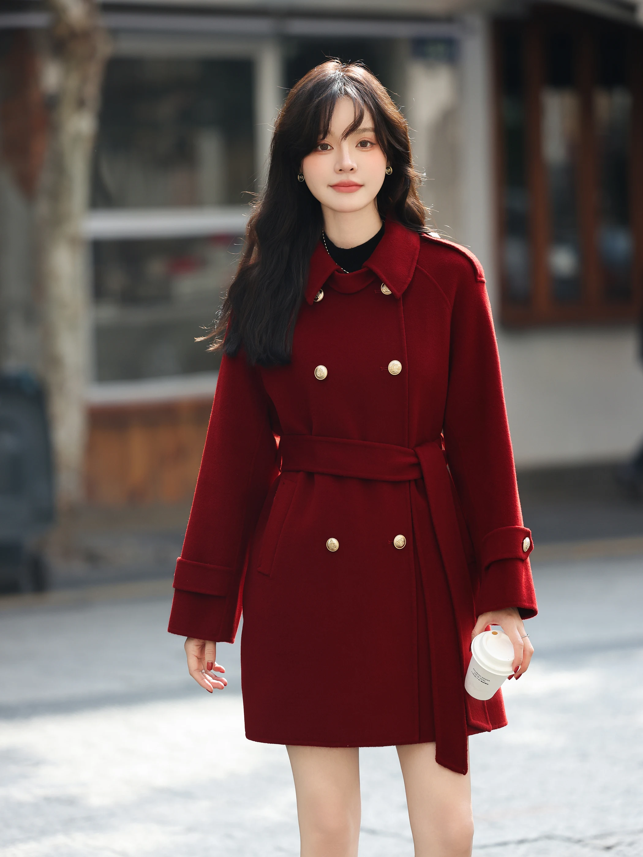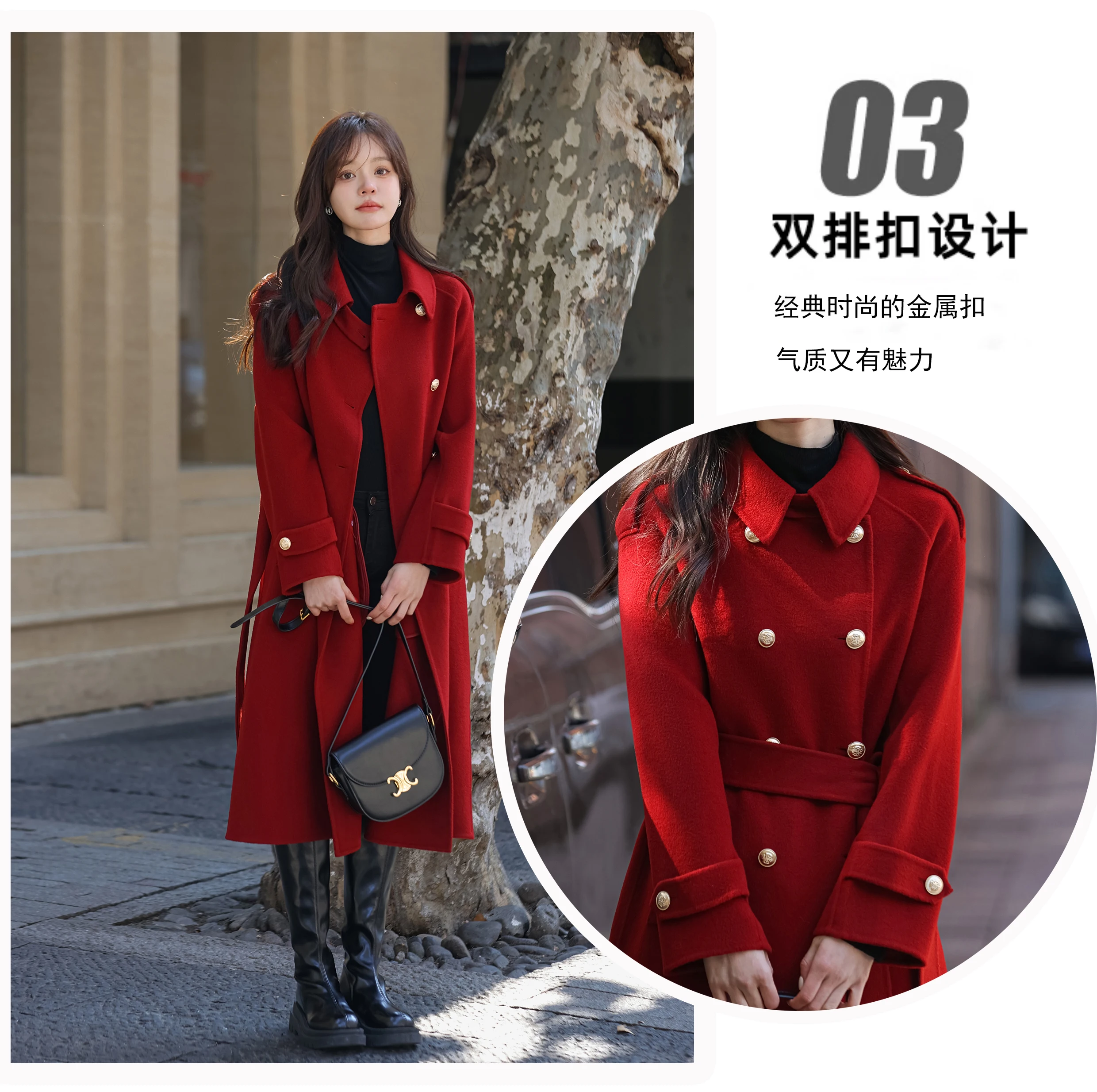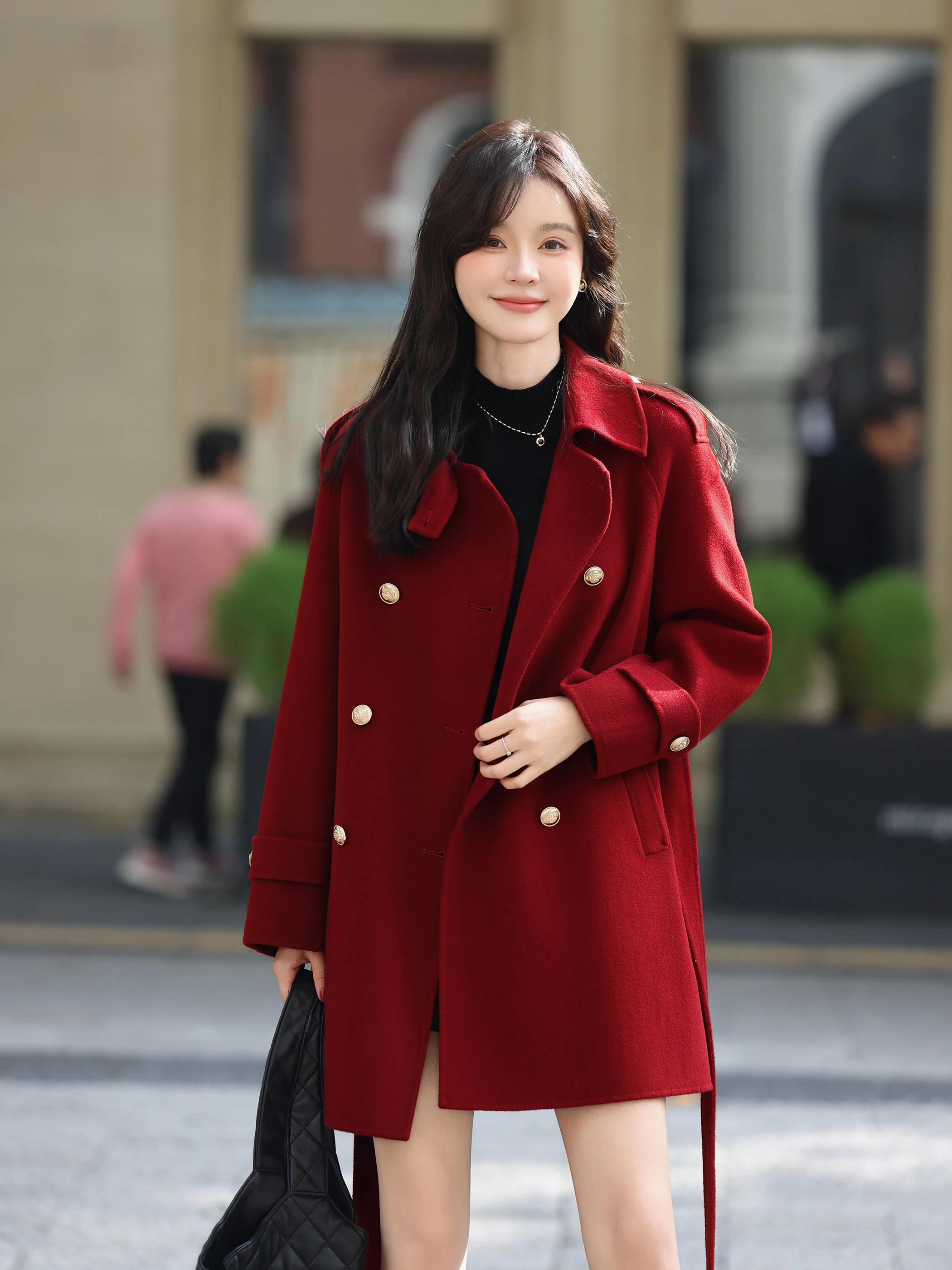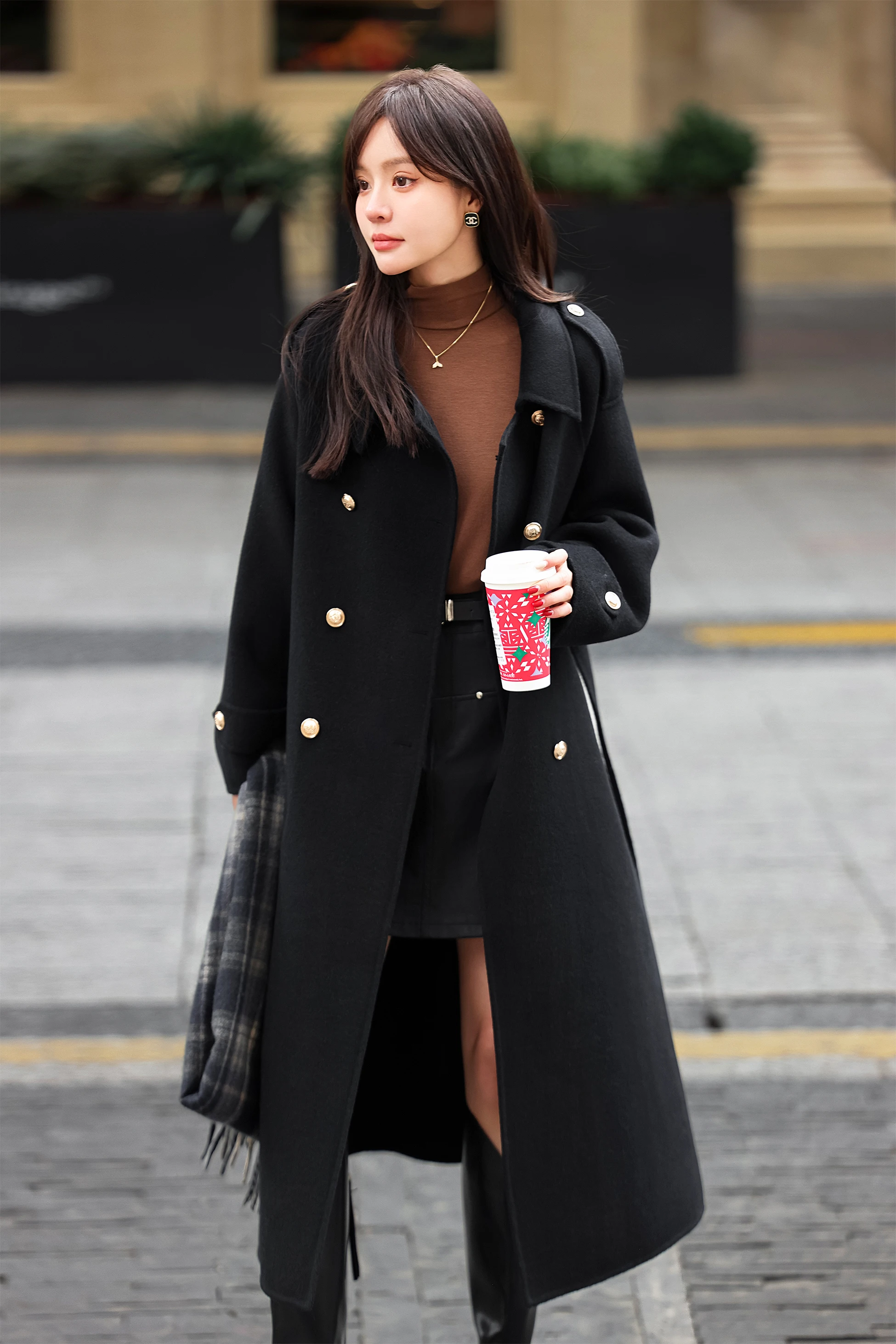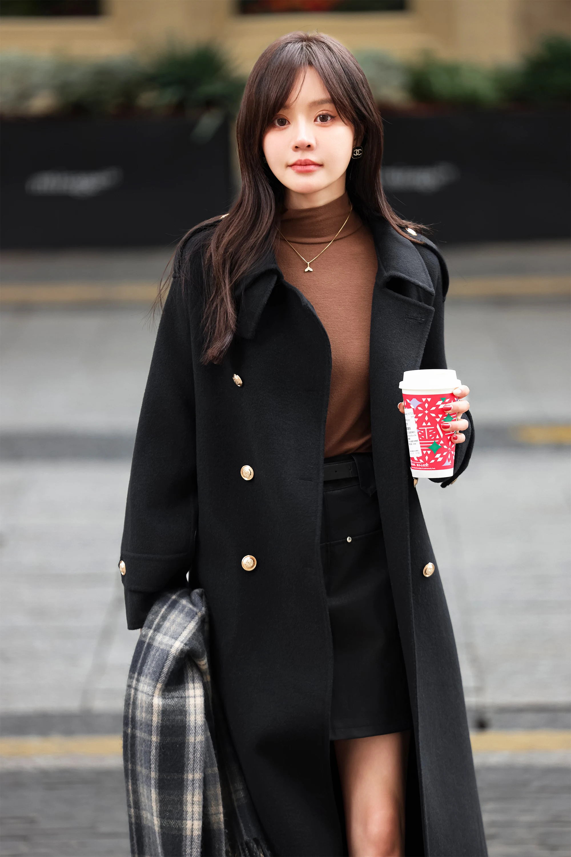 Vintage Double-Sided Cashmere Women's Coat Beige Woolen Style Autumn Winter New Korean Fashion Casual Gentle Fashion Long Coats