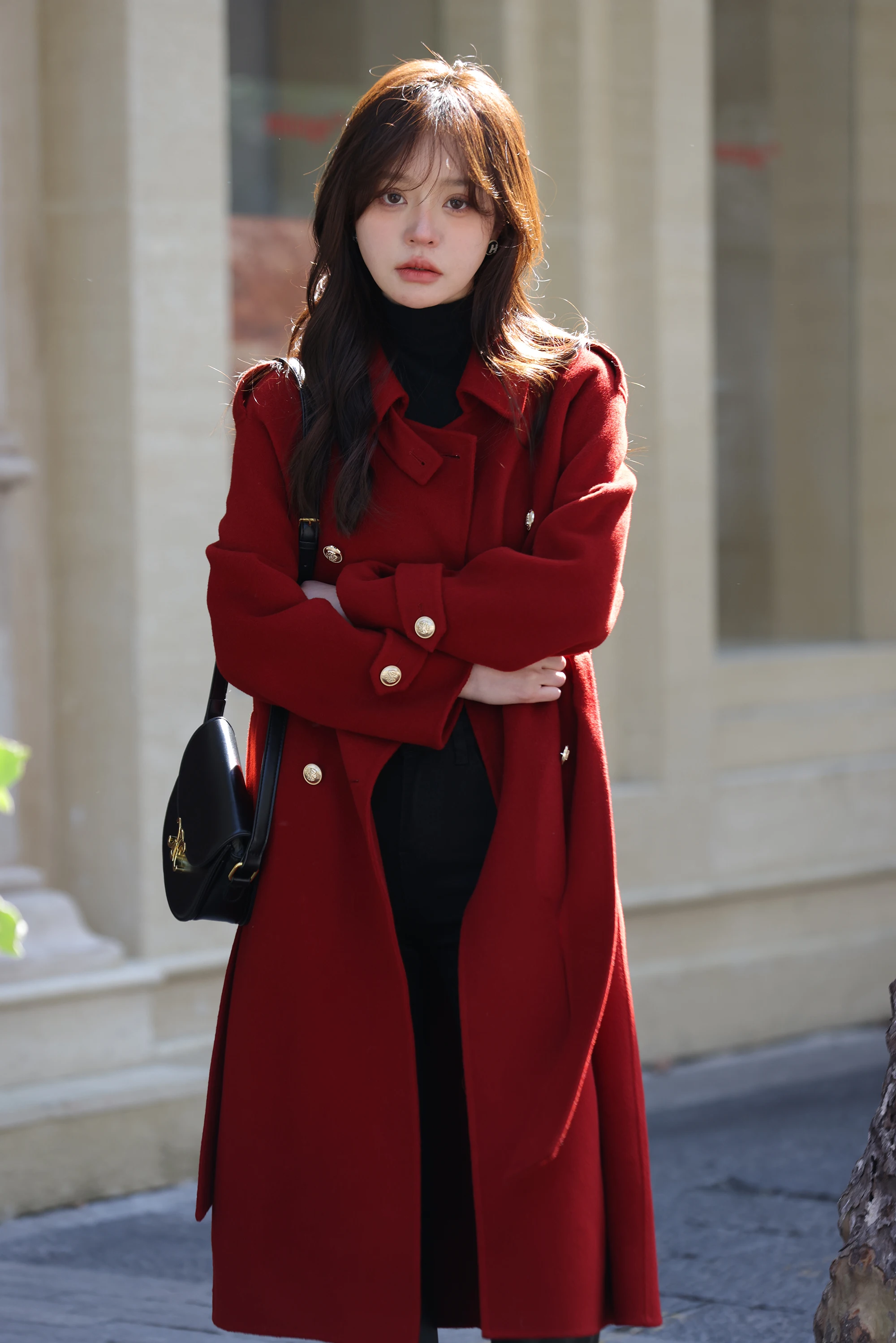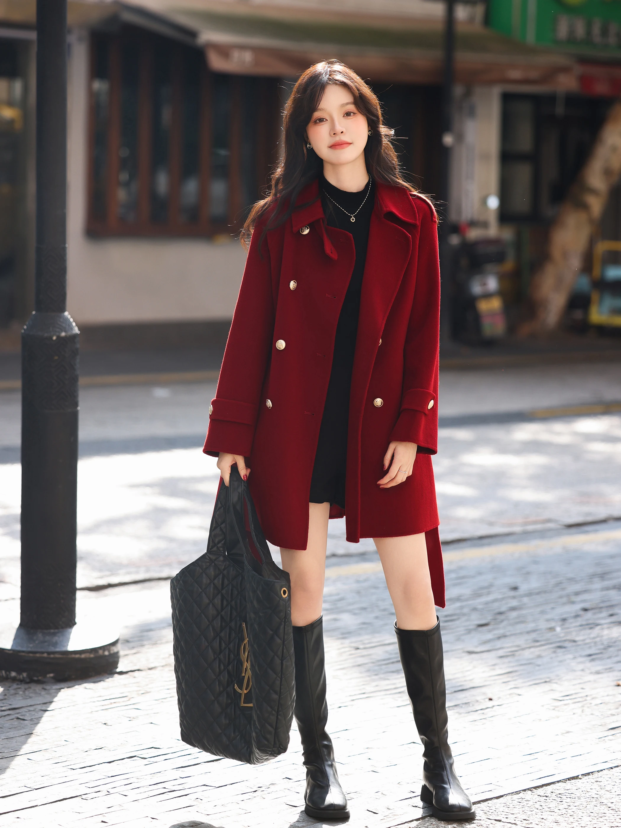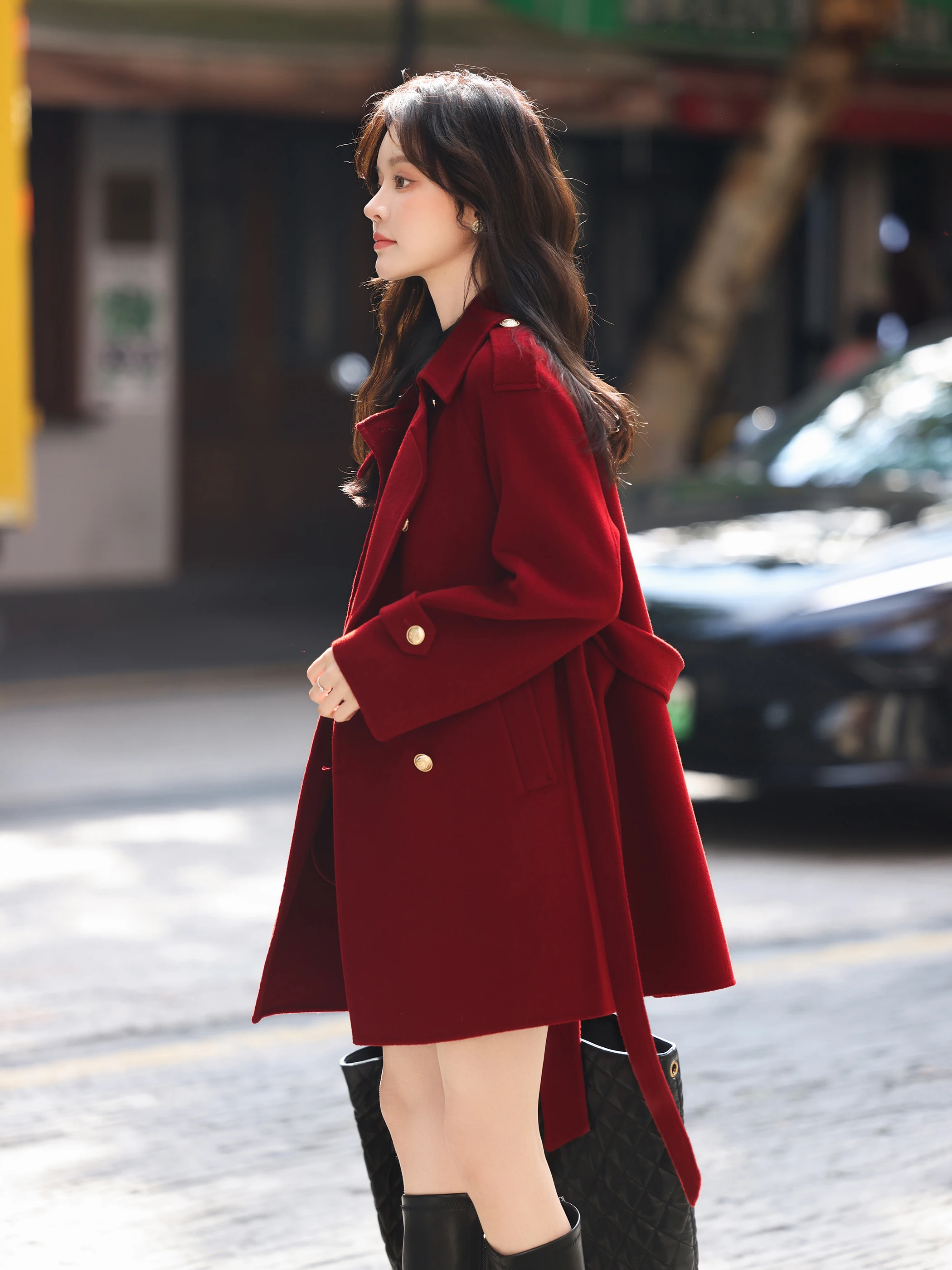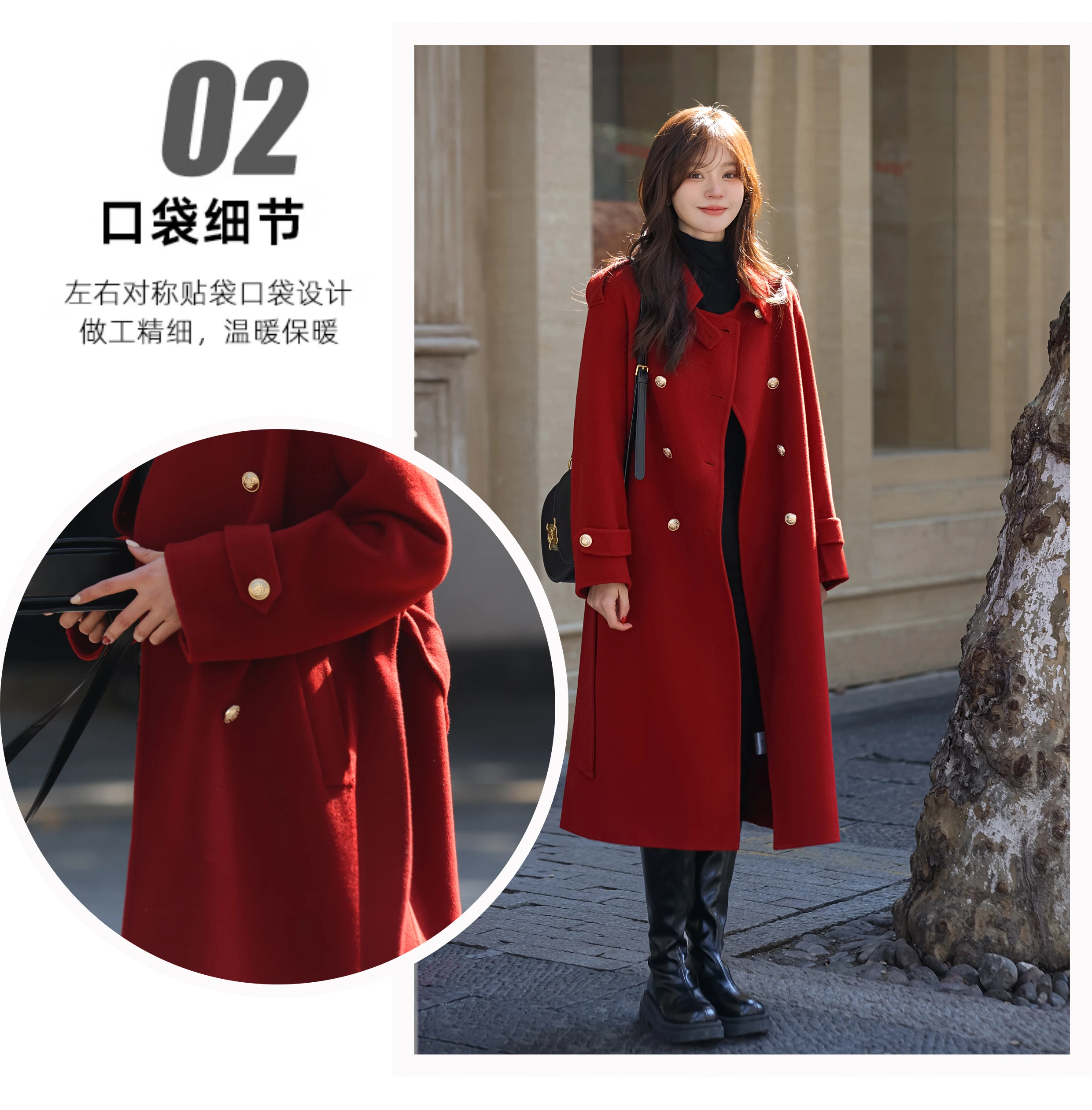 Vintage Double-Sided Cashmere Women's Coat Beige Woolen Style Autumn Winter New Korean Fashion Casual Gentle Fashion Long Coats