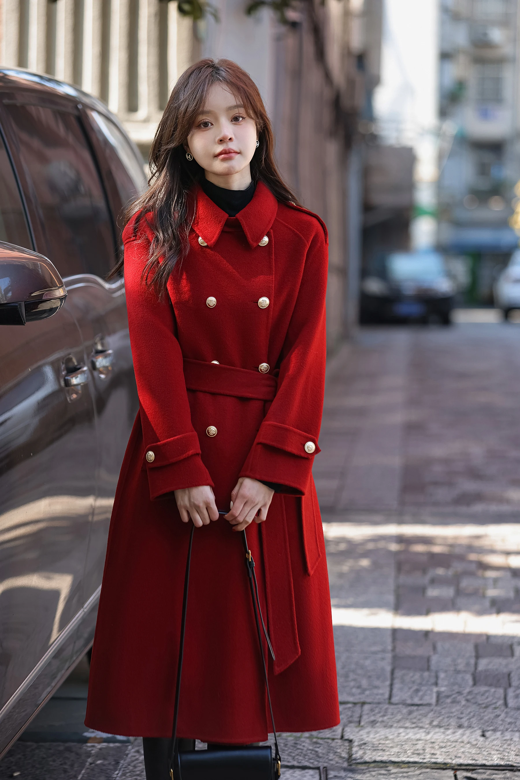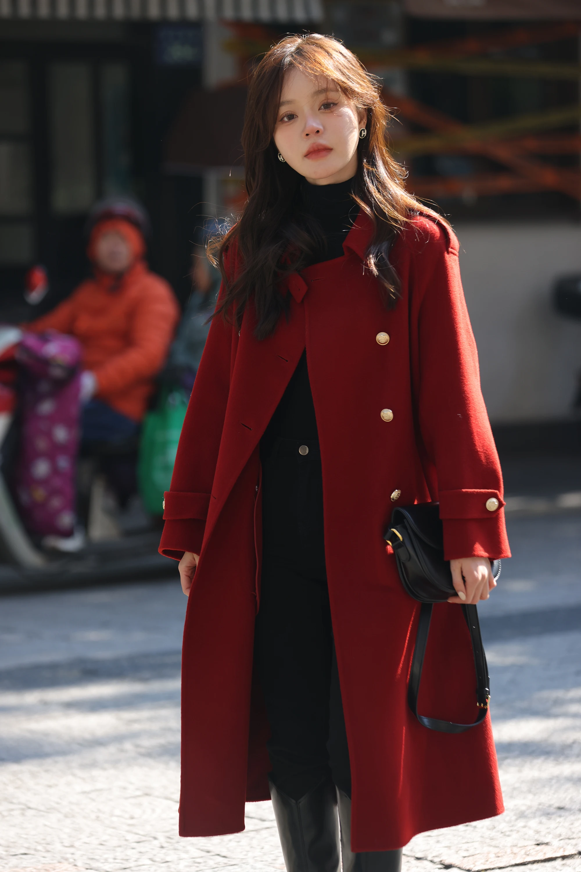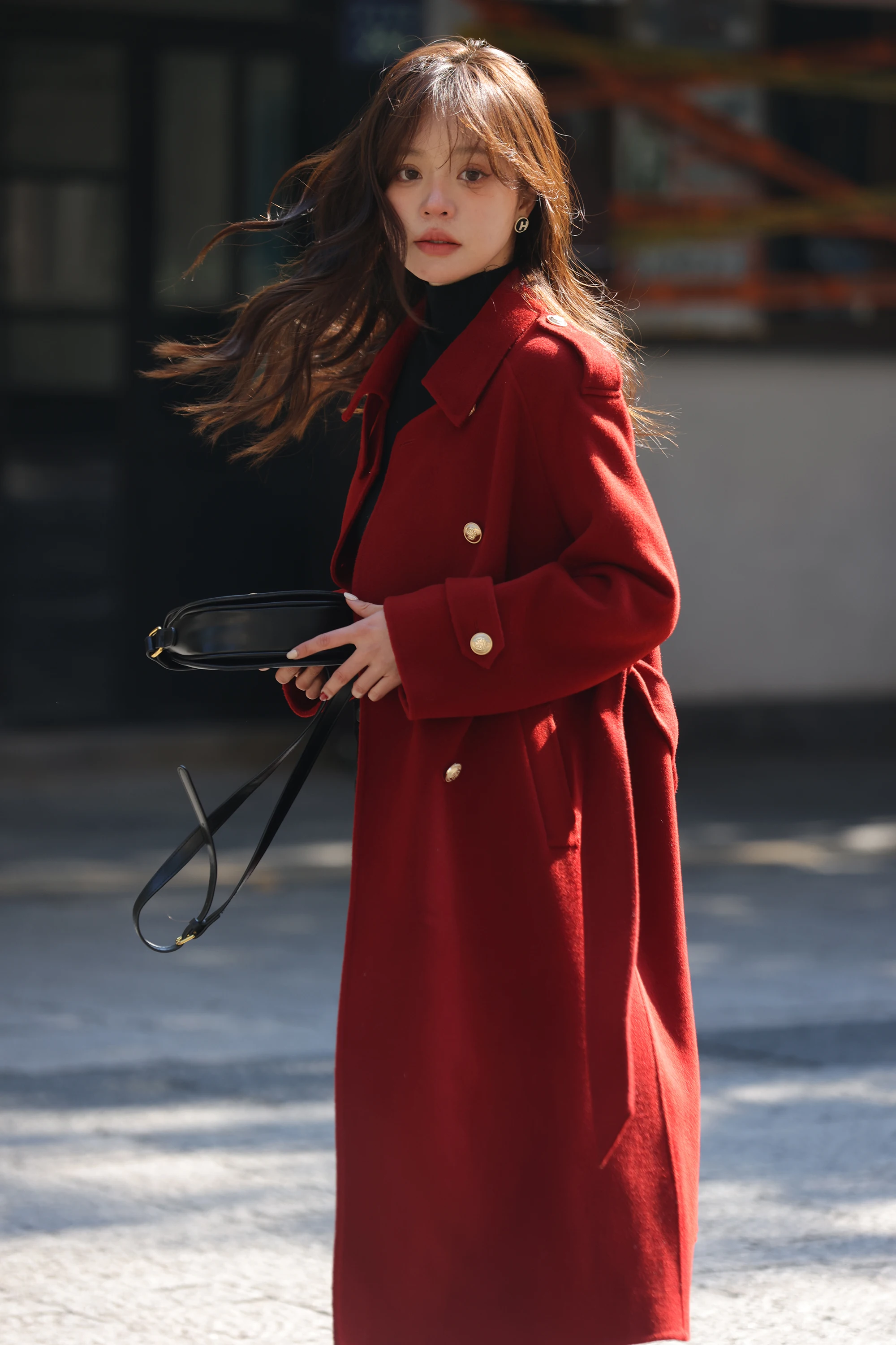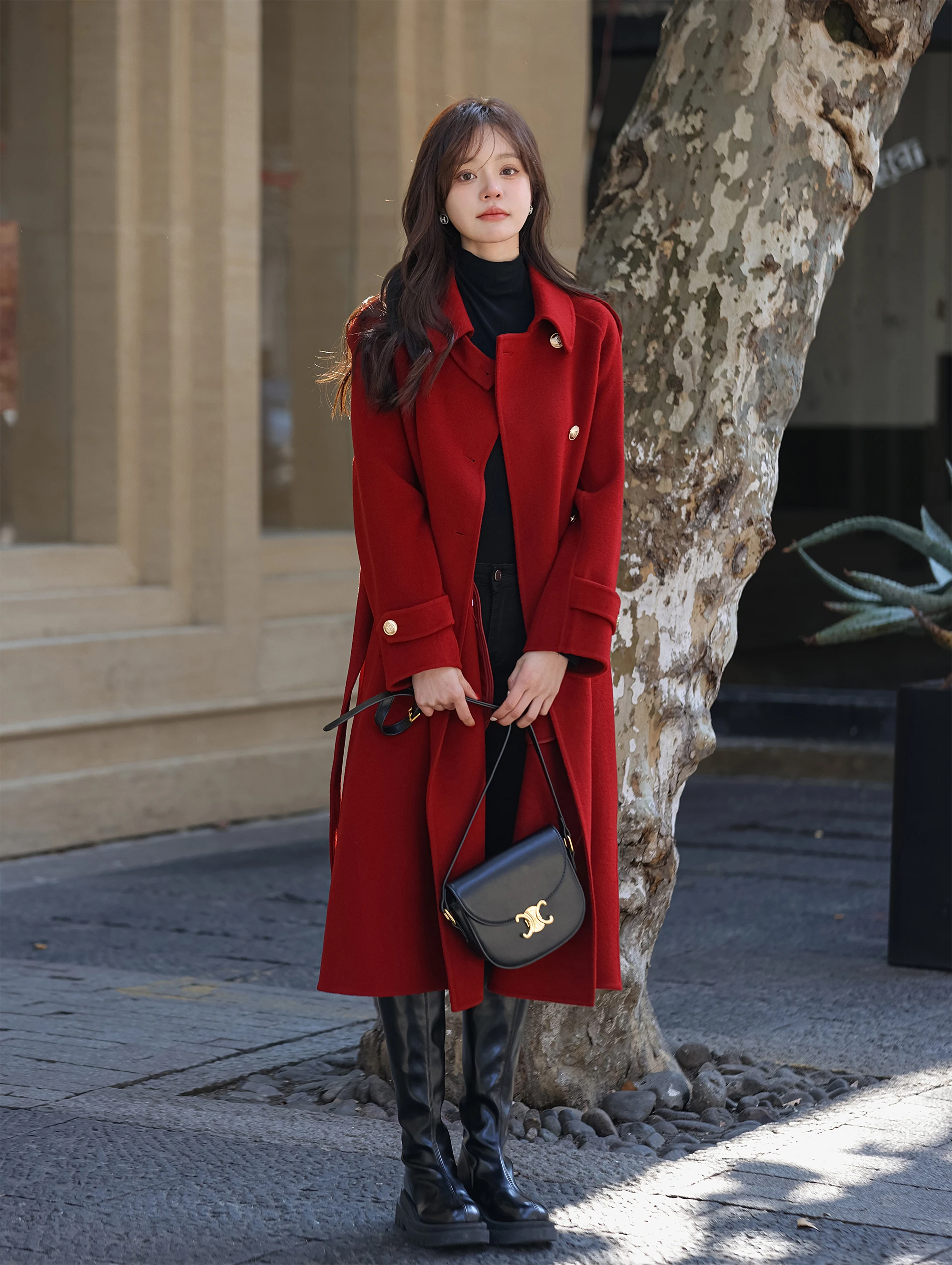 Vintage Double-Sided Cashmere Women's Coat Beige Woolen Style Autumn Winter New Korean Fashion Casual Gentle Fashion Long Coats