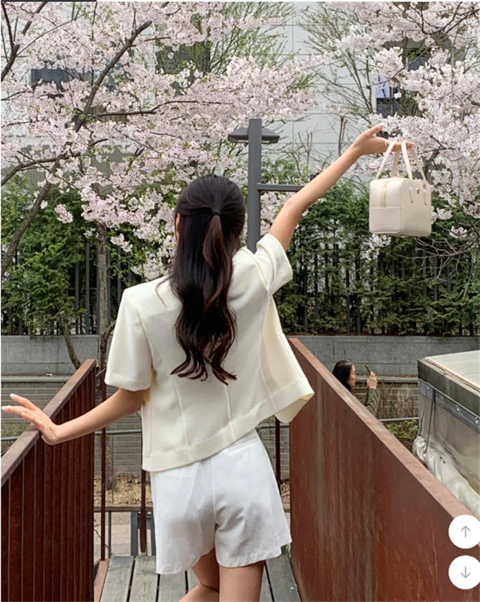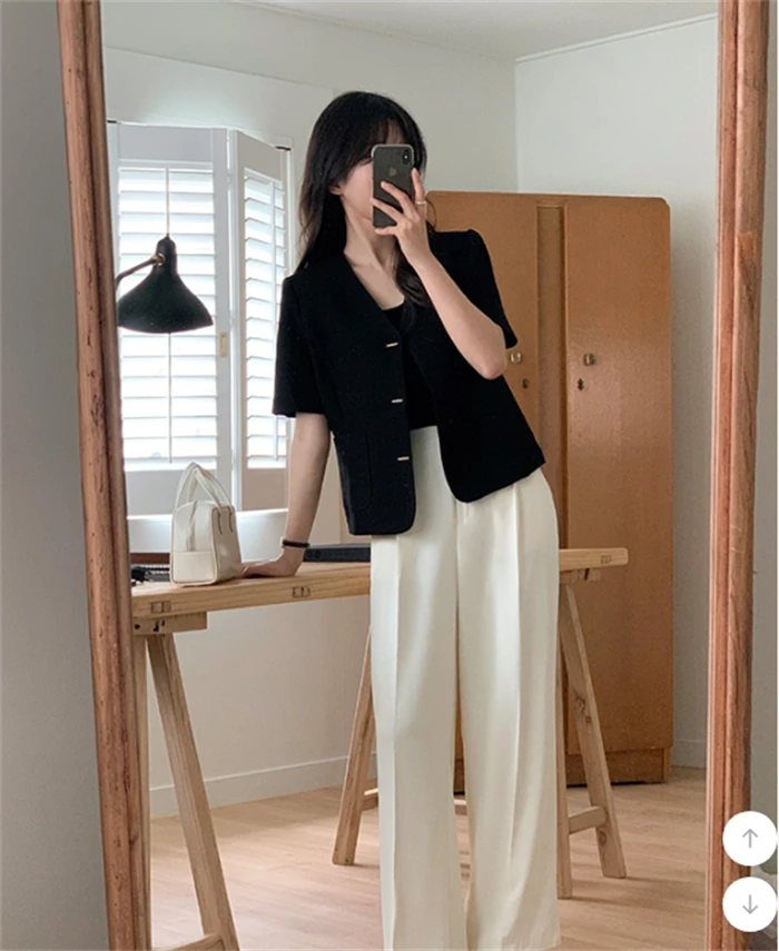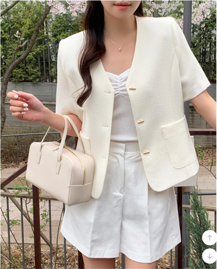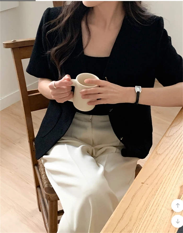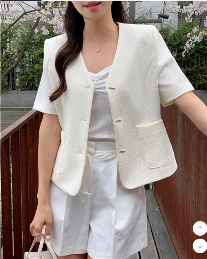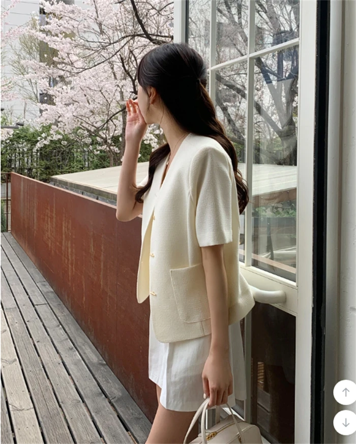 Women Fashion Solid Color V-neck Wool Coat Short Sleeve Jacket Horn Button Outerwear Elegant Office Woolen Winter Overcoat