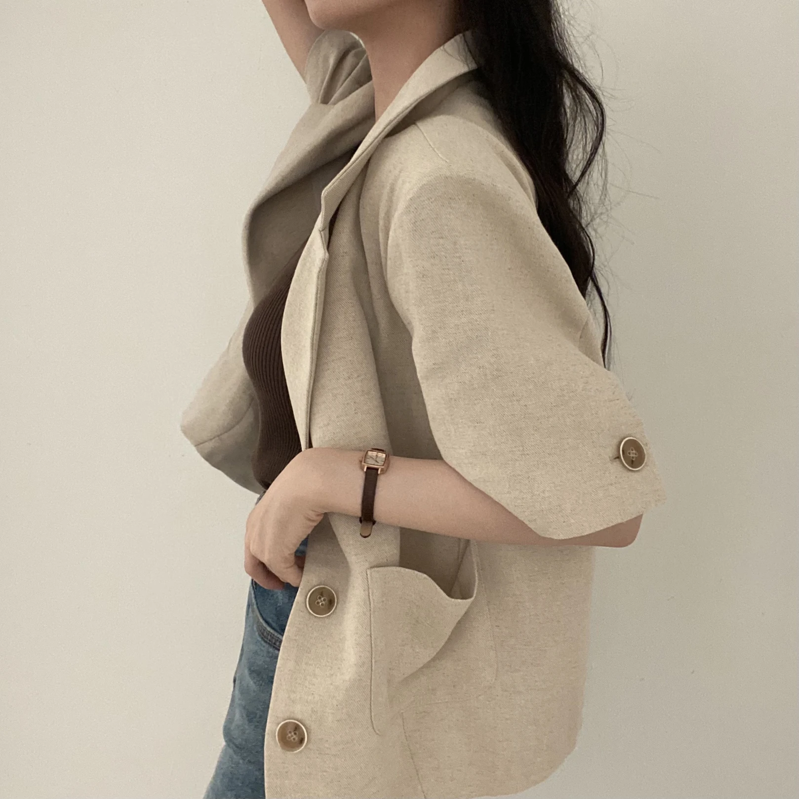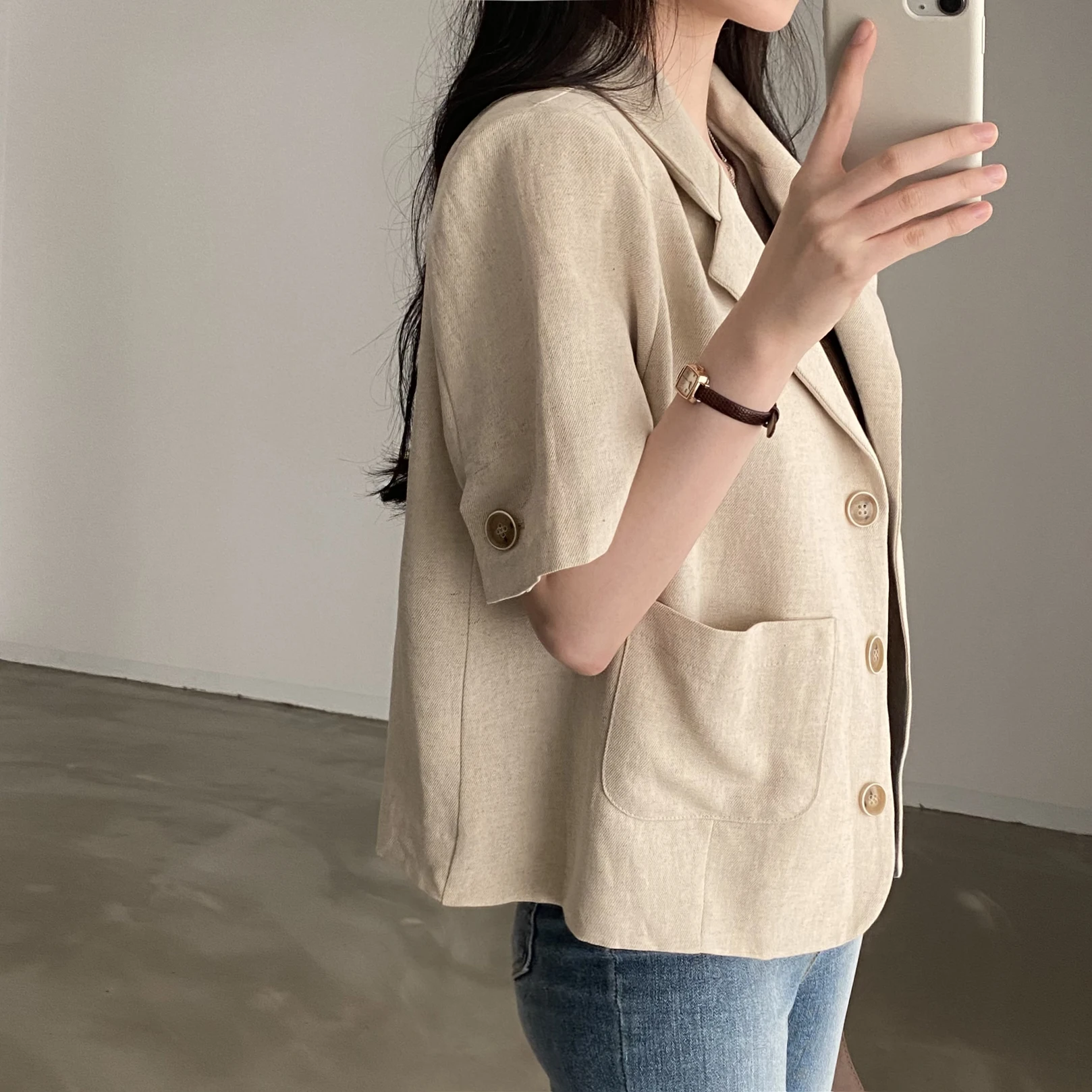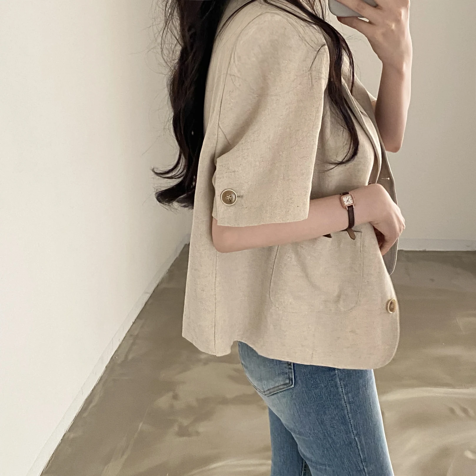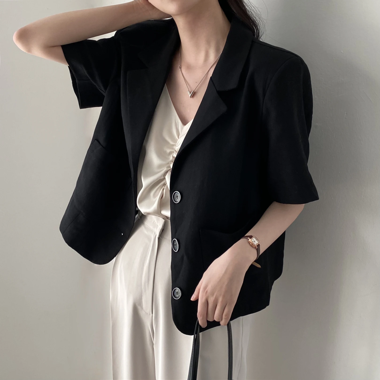 Women's Short Jacket Sweet Elegant Turn-Down Collar Coats Loose Casual Versatile 2025 Spring Summer New Short Sleeve Top