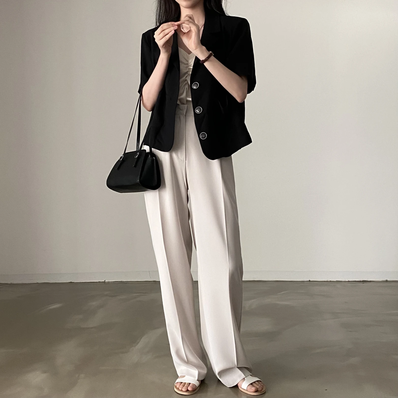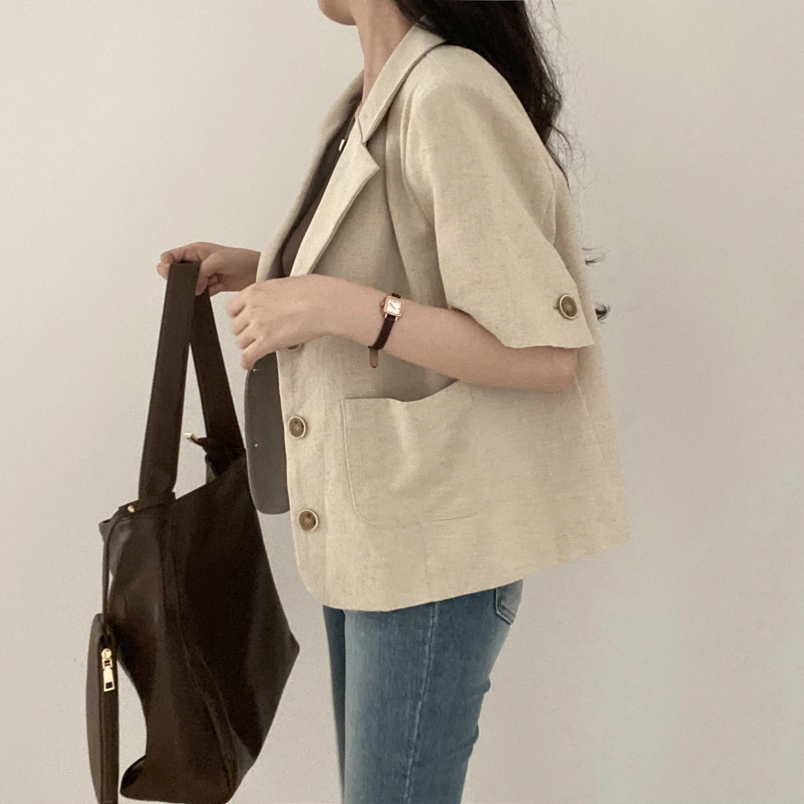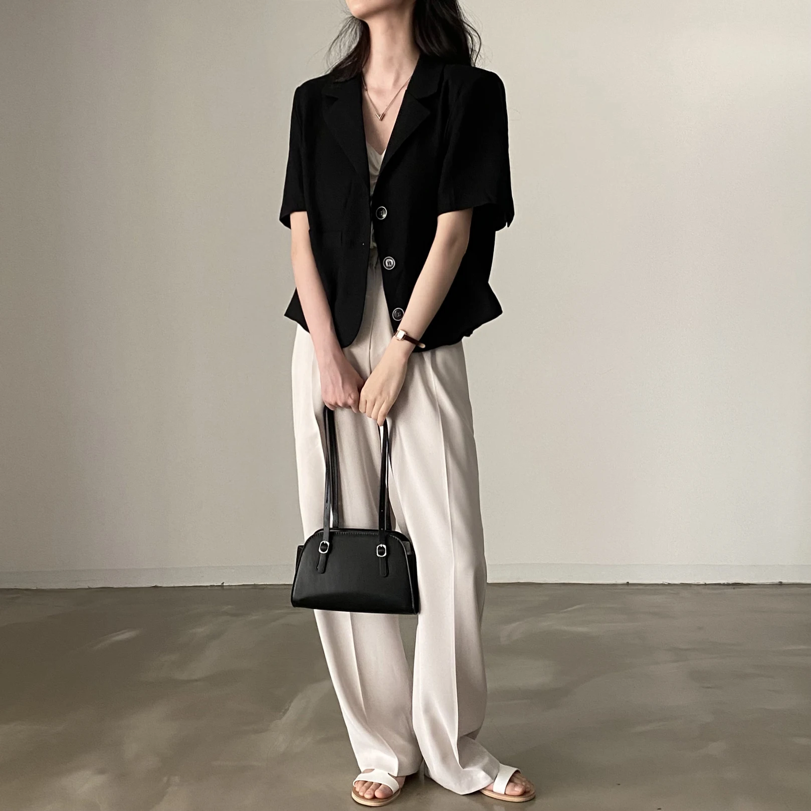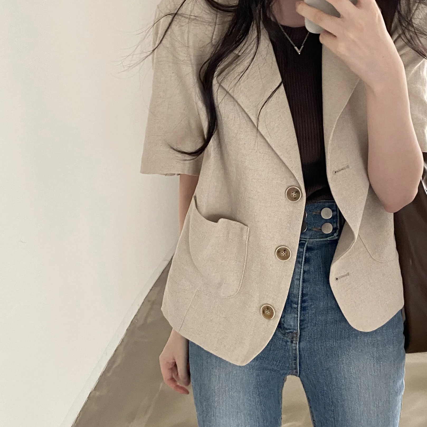 Women's Short Jacket Sweet Elegant Turn-Down Collar Coats Loose Casual Versatile 2025 Spring Summer New Short Sleeve Top