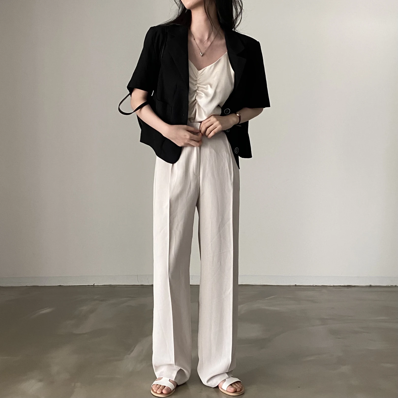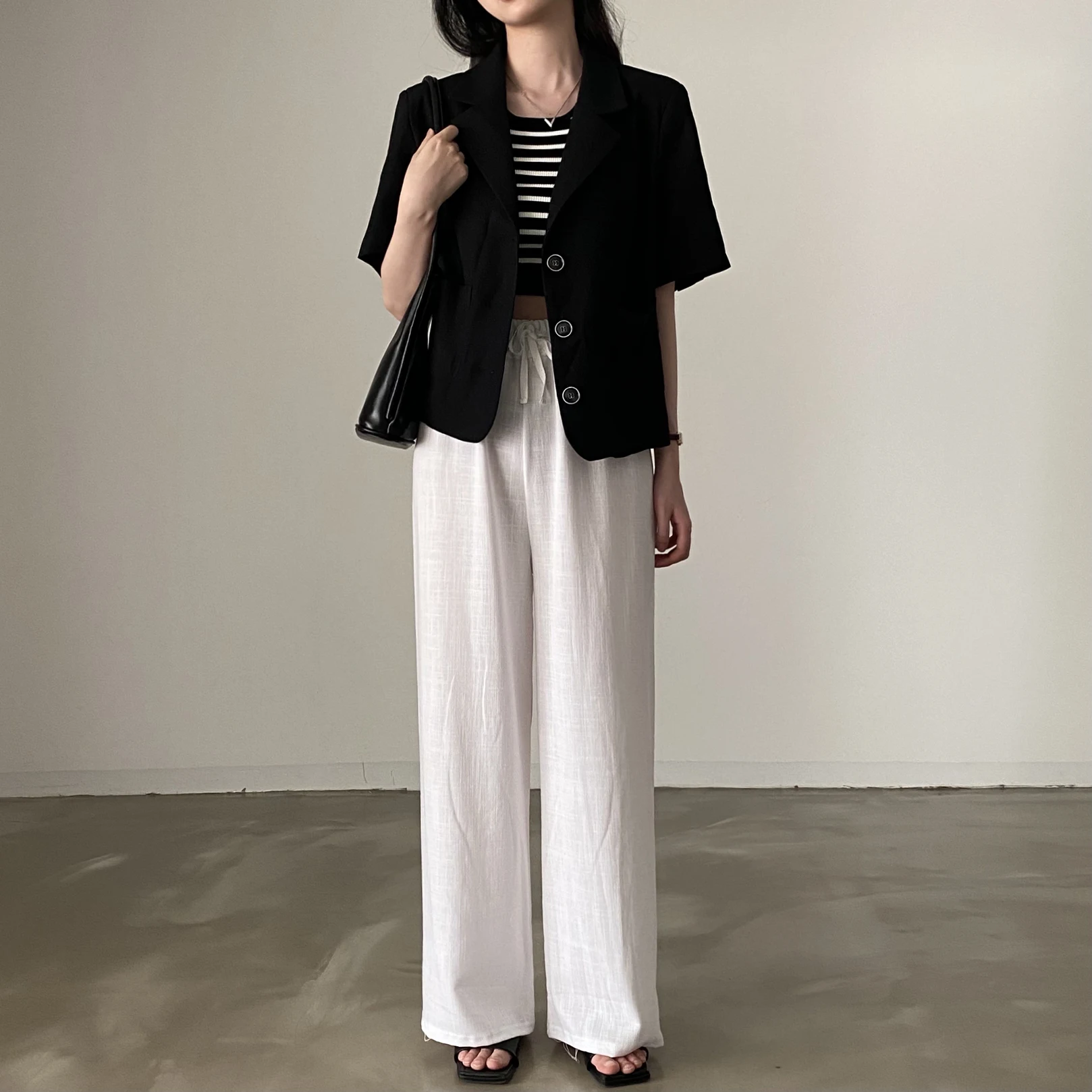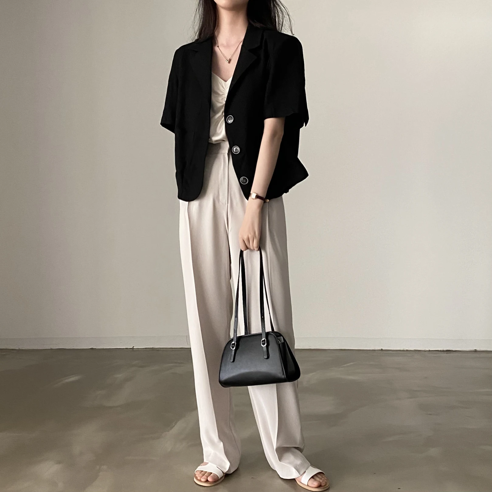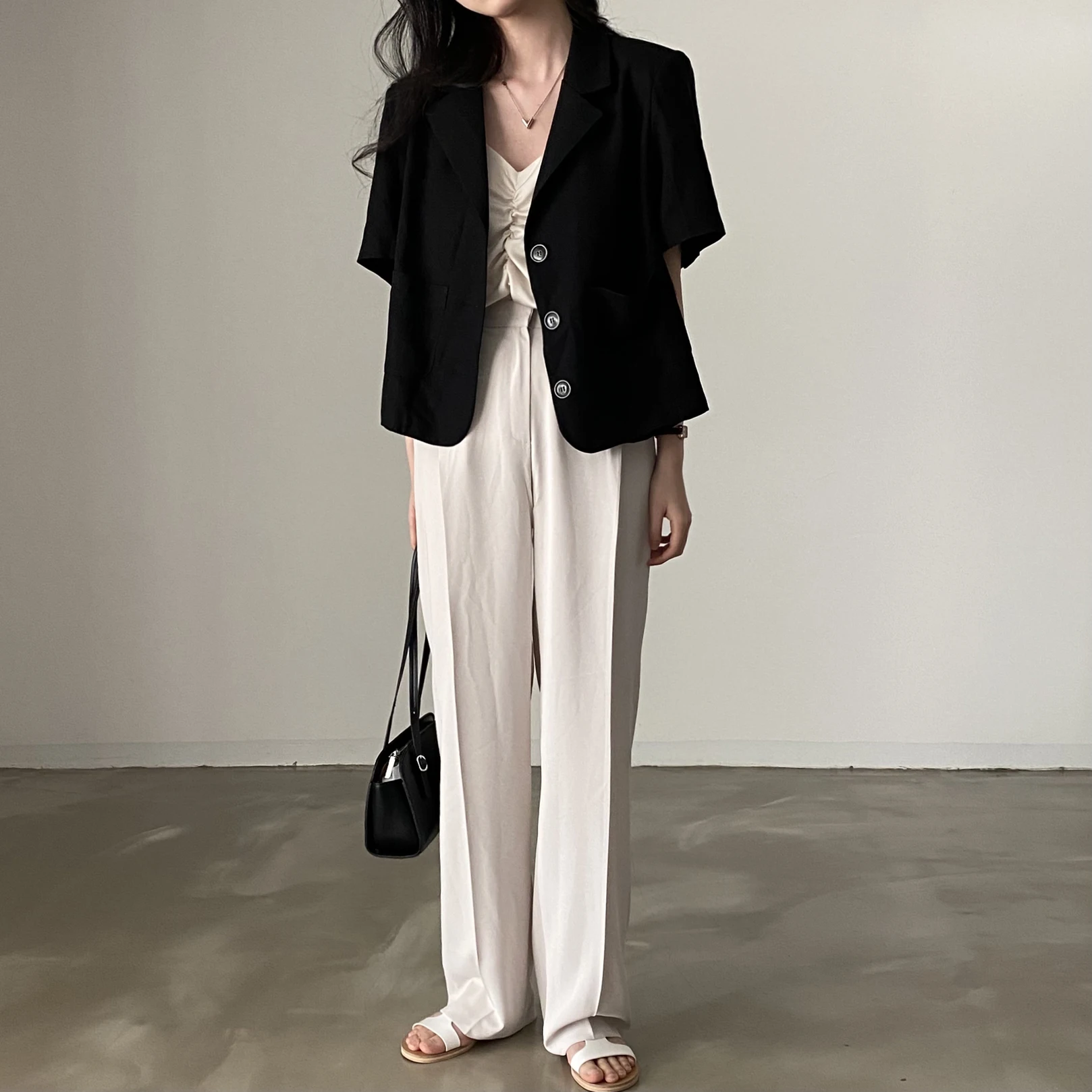 Women's Short Jacket Sweet Elegant Turn-Down Collar Coats Loose Casual Versatile 2025 Spring Summer New Short Sleeve Top
